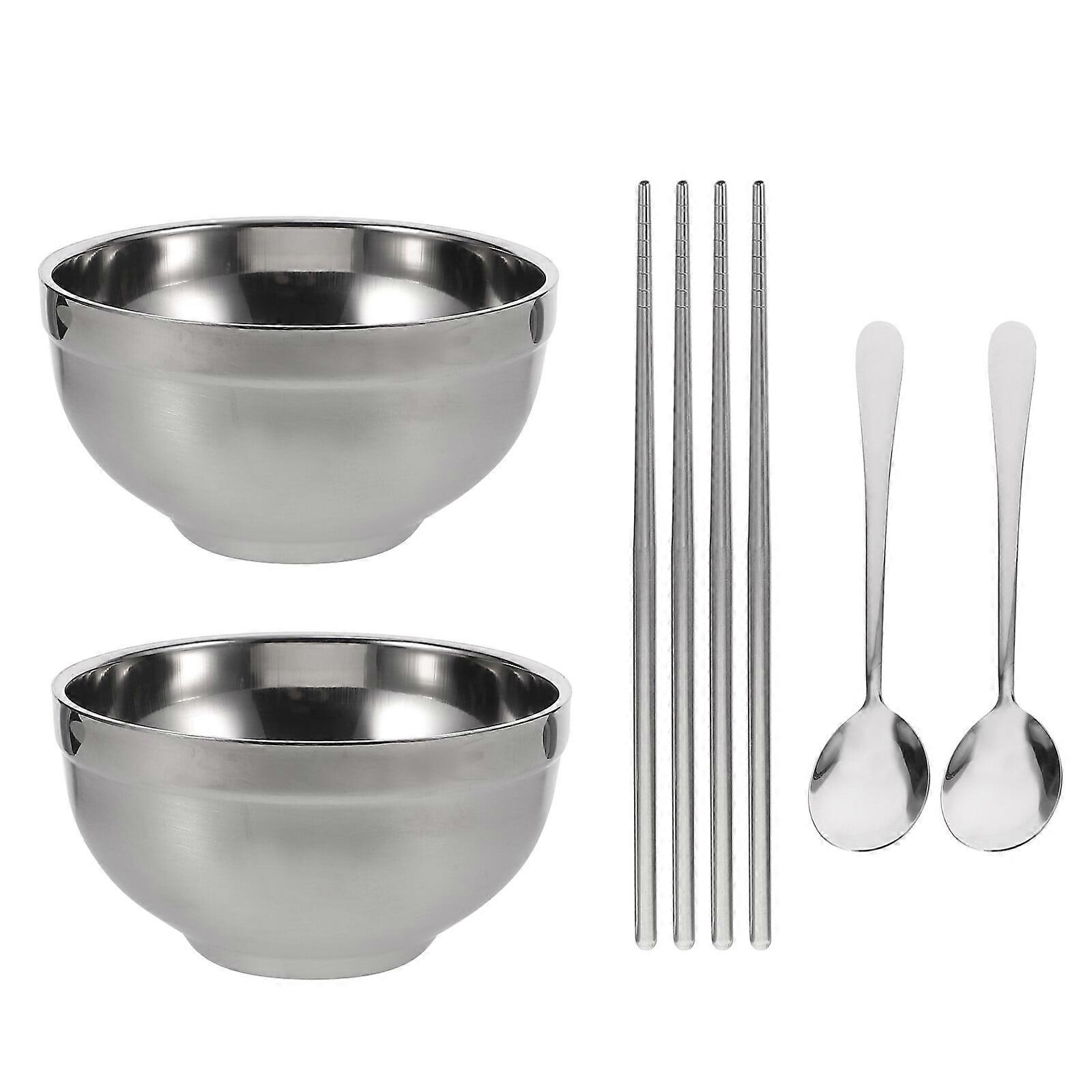 2 sets of Stainless Steel Bowl Chopsticks Spoons Retro Tableware Portable Bowl
