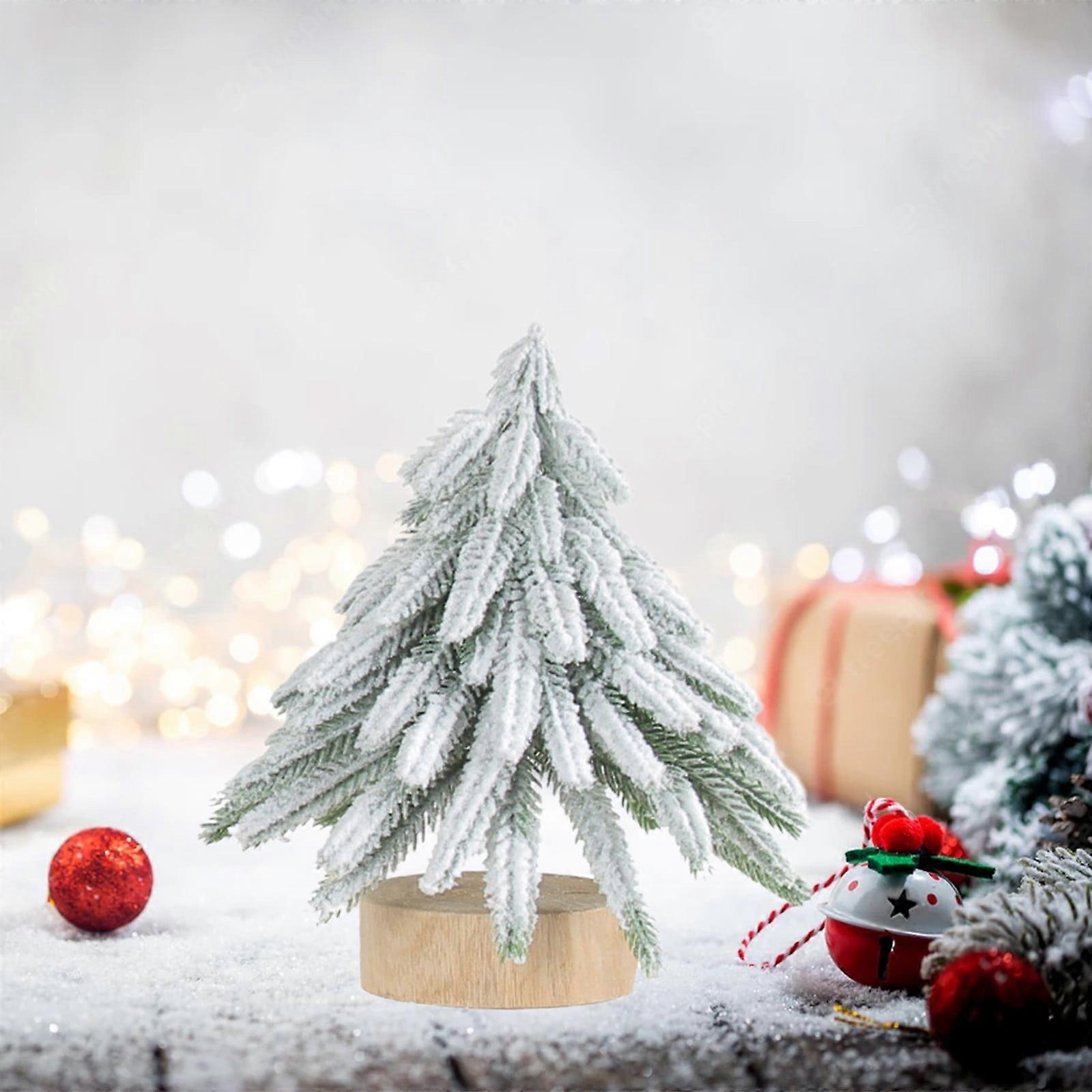 5.91x7.09 Inch Mini Christmas Trees, Artificial Bottle Brush Sisal Snow Trees with Wooden Base for Holiday Decor, Tabletop, Village & Craft Displays