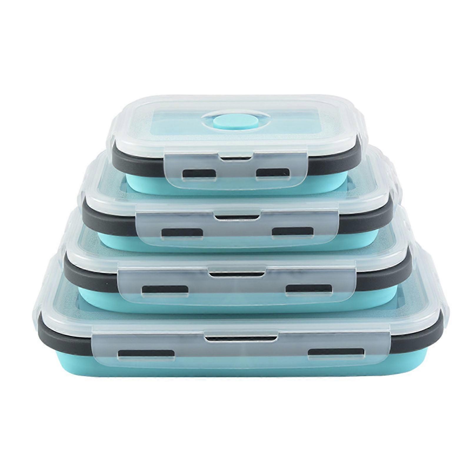 4Pcs Collapsible Food Storage Containers with Lids - Flat Stackable Silicone Bento Boxes for Lunch, Picnic, Outdoor, Refrigerator Use