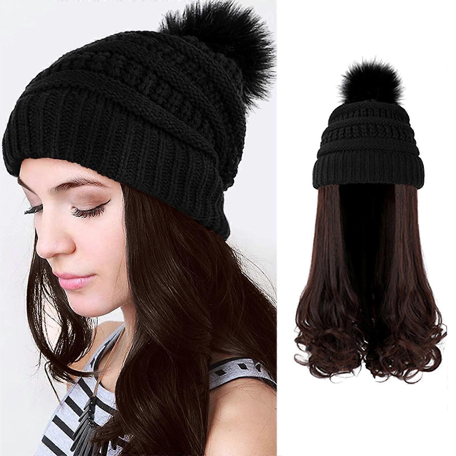 human hair wigs for women Fashion Long Curly Hair Hat Wig One Knit Hat Wool Curl Corn Perm Curl Adult Female Costume Wigs Toupees, D