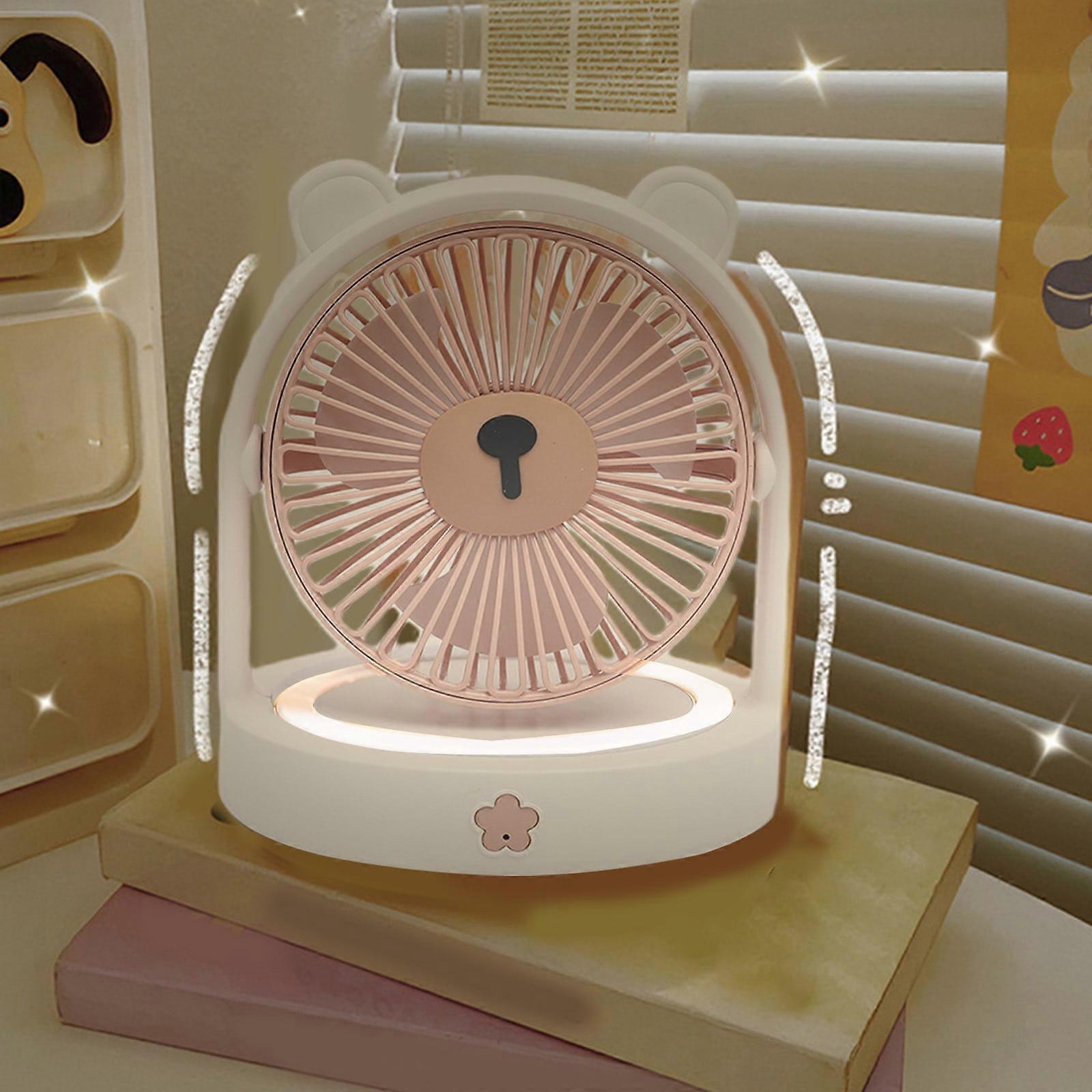 OYIGU Cute Bear Desk Fan with Night Light, 3 Speeds, Adjustable Wind, Compatible with Dorm, Home, Office, School