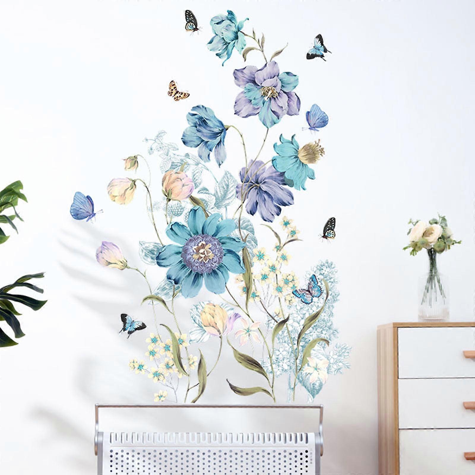 Winysin Pattern Blue Flower Butterfly Playing Bedroom Living Room Porch Home Wall Decoration Wall Sticker
