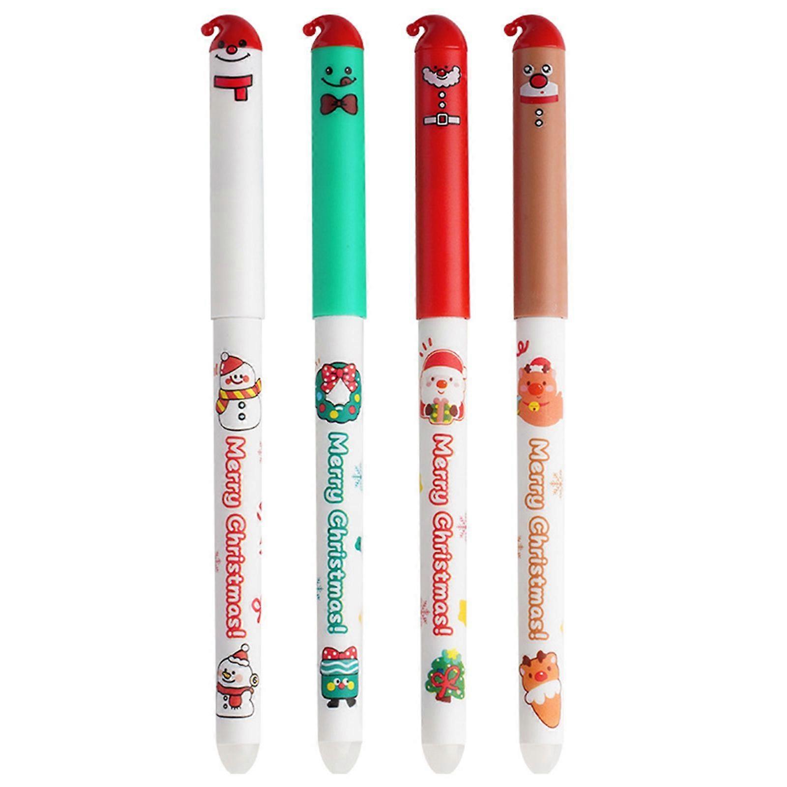 4Pcs Christmas Erasable Pens Santa Snowman Reindeer Patterns Gel Pens 0.5mm Refillable Writing Pens School Office Supplies