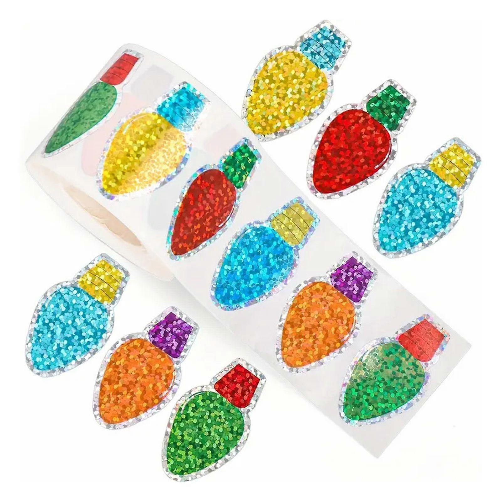 500 Pcs Christmas Stickers Roll Gllitter Tree/Maple Leaf/Santa Hat Seal Stickers Waterproof Self-Adhesive Decals for Envelopes Invitations Greeting Ca