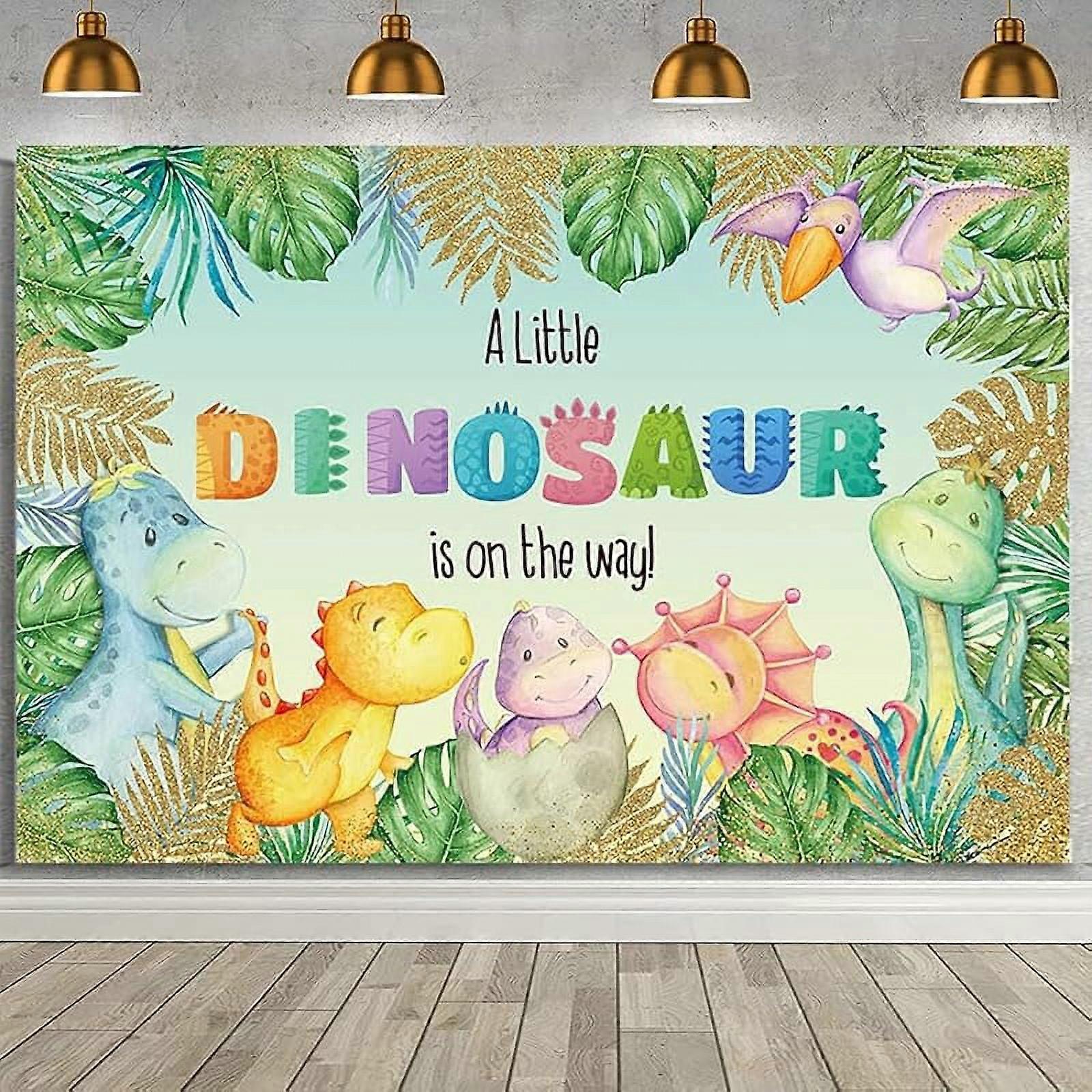 Cute Dinosaur Jungle Safari Baby Shower Backdrop with Tropical Palm Leaves - A Little Dinosaur is On The Way Decorations Banner
