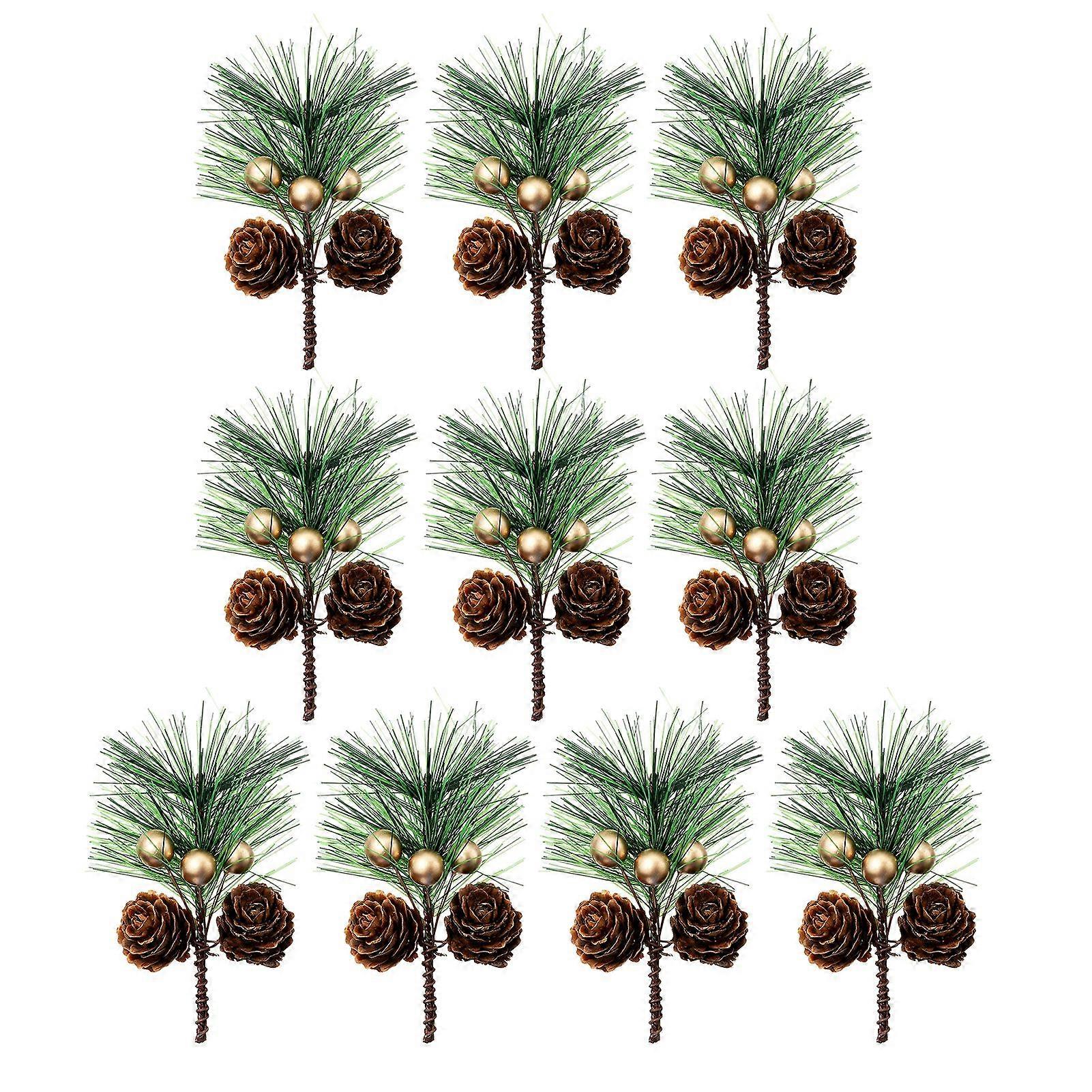 10 Pcs Artificial Pine Pick Mini Pine Needles Branches with Gold Berry Small Pinecones Stems for Holiday Crafts Christmas Tree DIY Garland Wreath Deco