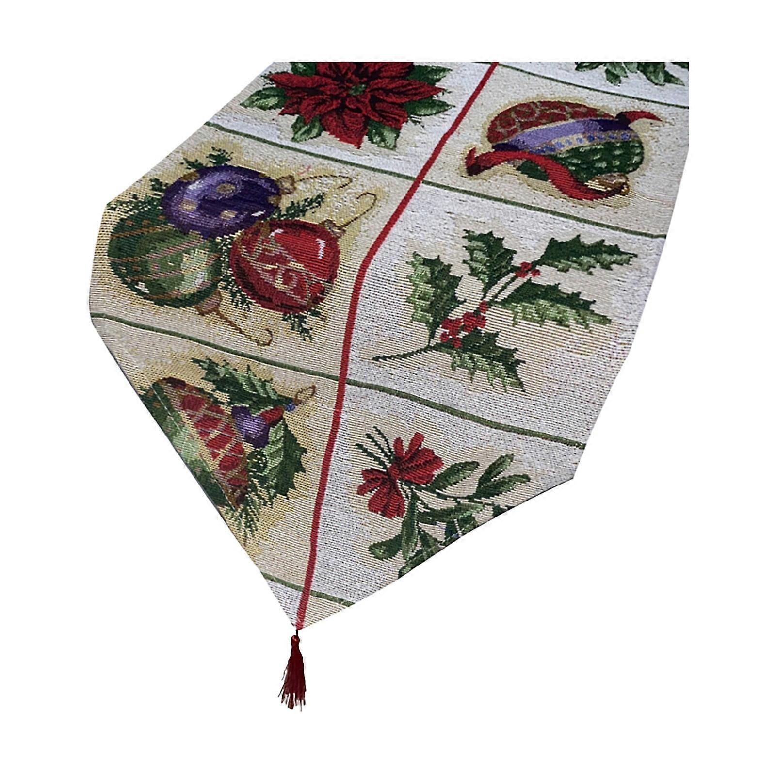 Christmas Cotton Linen Table Runner, Compatible with Holiday Home Decor, Family Gathering Table Decoration Cloth (1X)