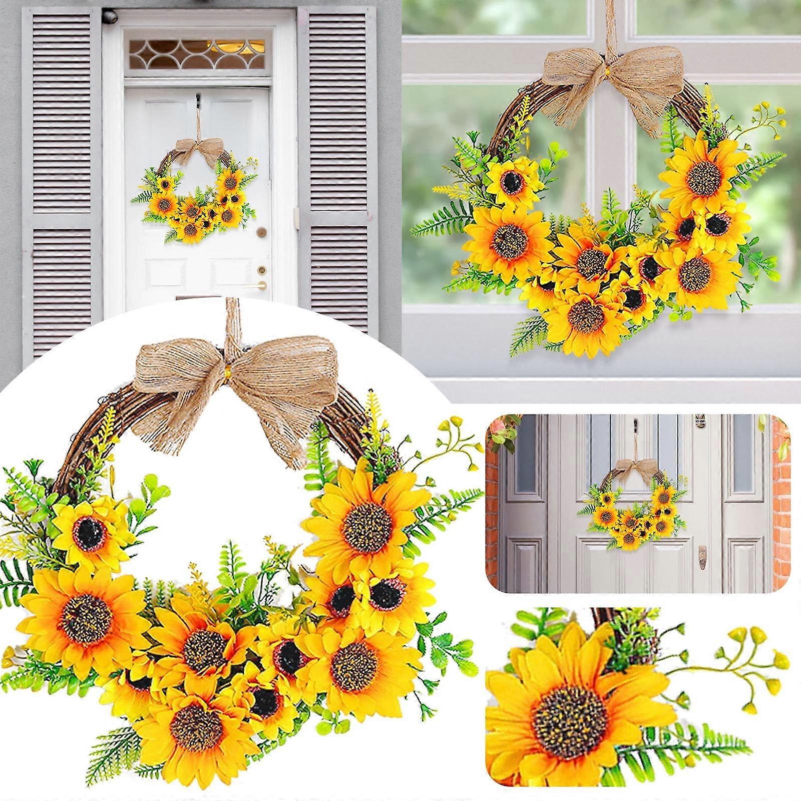 Sunflower Rattan Wreath for Door, Window, Indoor & Outdoor Decor, Spring Summer Party Decoration, Compatible with Giyblacko