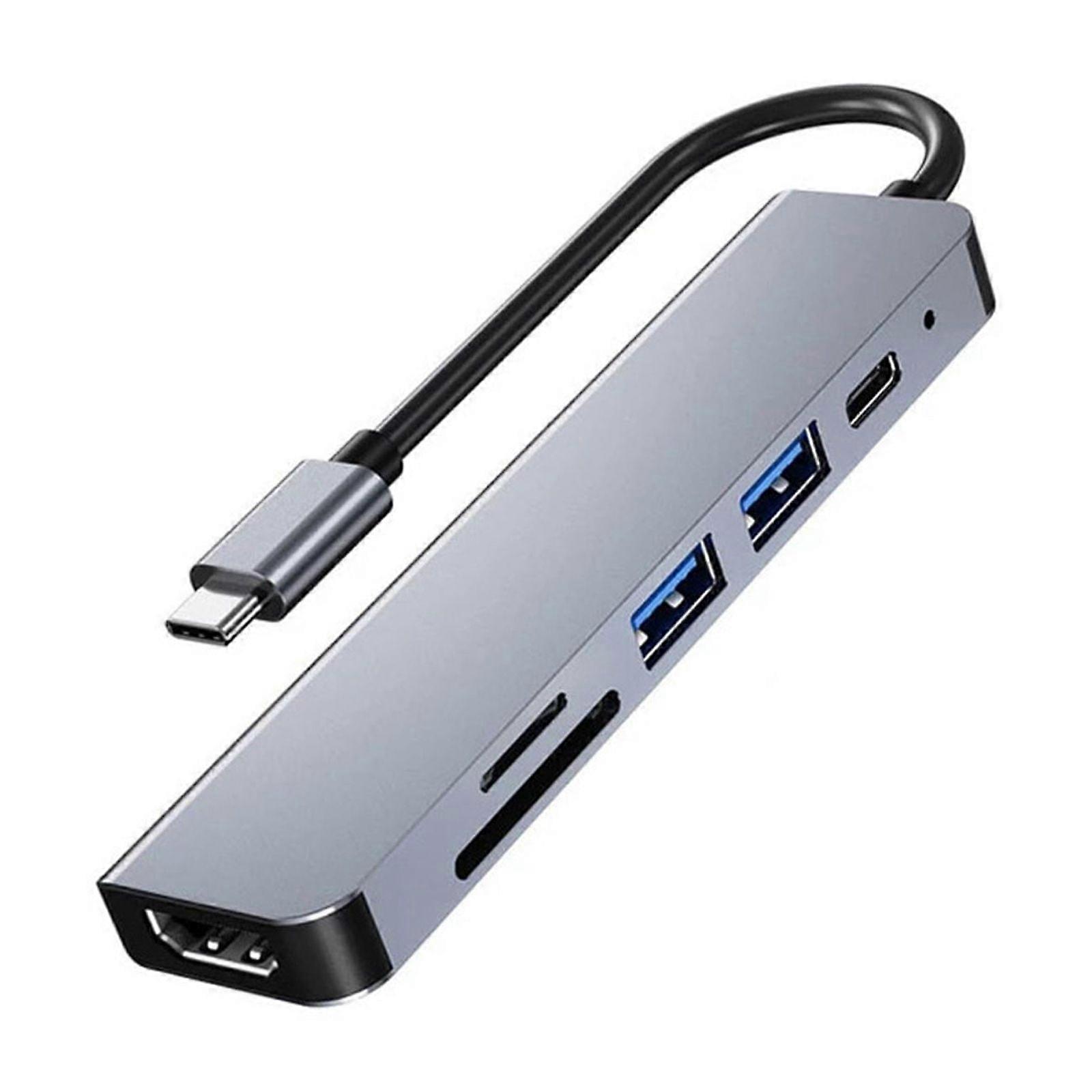 GUYUTING Portable 6-in-1 USB C Hub for Travelers Lightweight Aluminum Design for On-the-Go Workflows