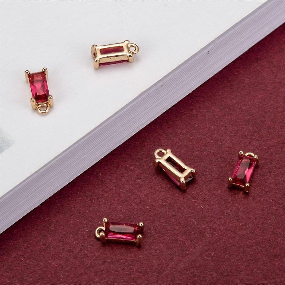 5pc Transparent Glass Charms for DIY Jewelry Making with Brass Findings Faceted Rectangle Light Gold Deep Pink 8.5x4x3mm Hole: 1mm