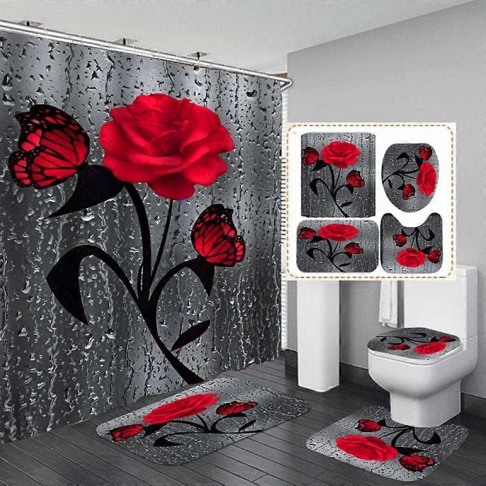 3D Retro Butterfly Rose Waterproof Shower Curtain Home Bathroom Curtain 70\\\"x70\\\" inch