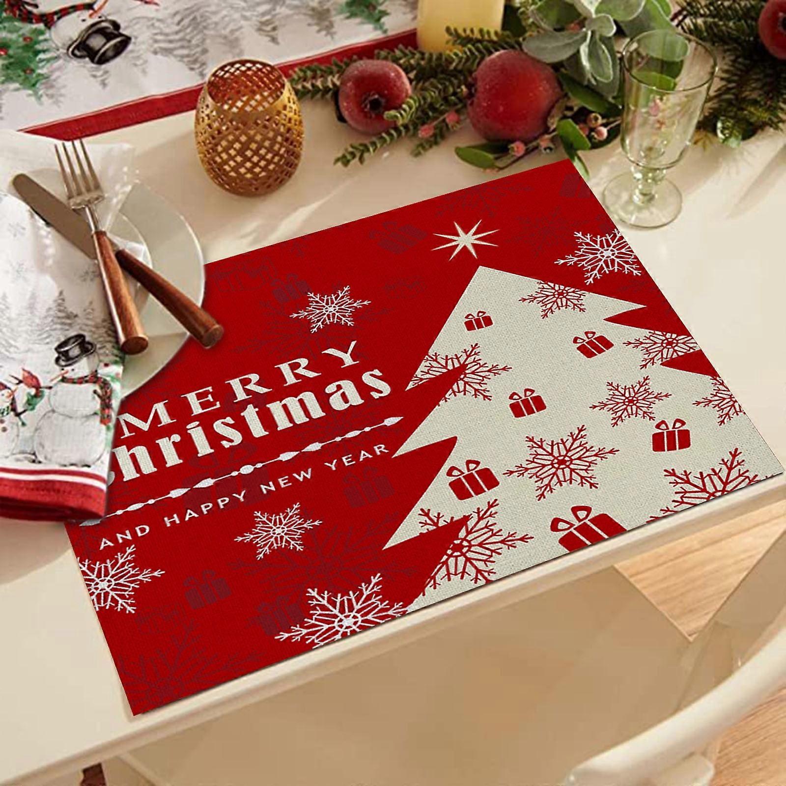 Xubond Christmas Placemats 32x21cm, Waterproof Red Holiday Mats for Dining Table, Winter Snowflakes Design, Washable Kitchen Placemats