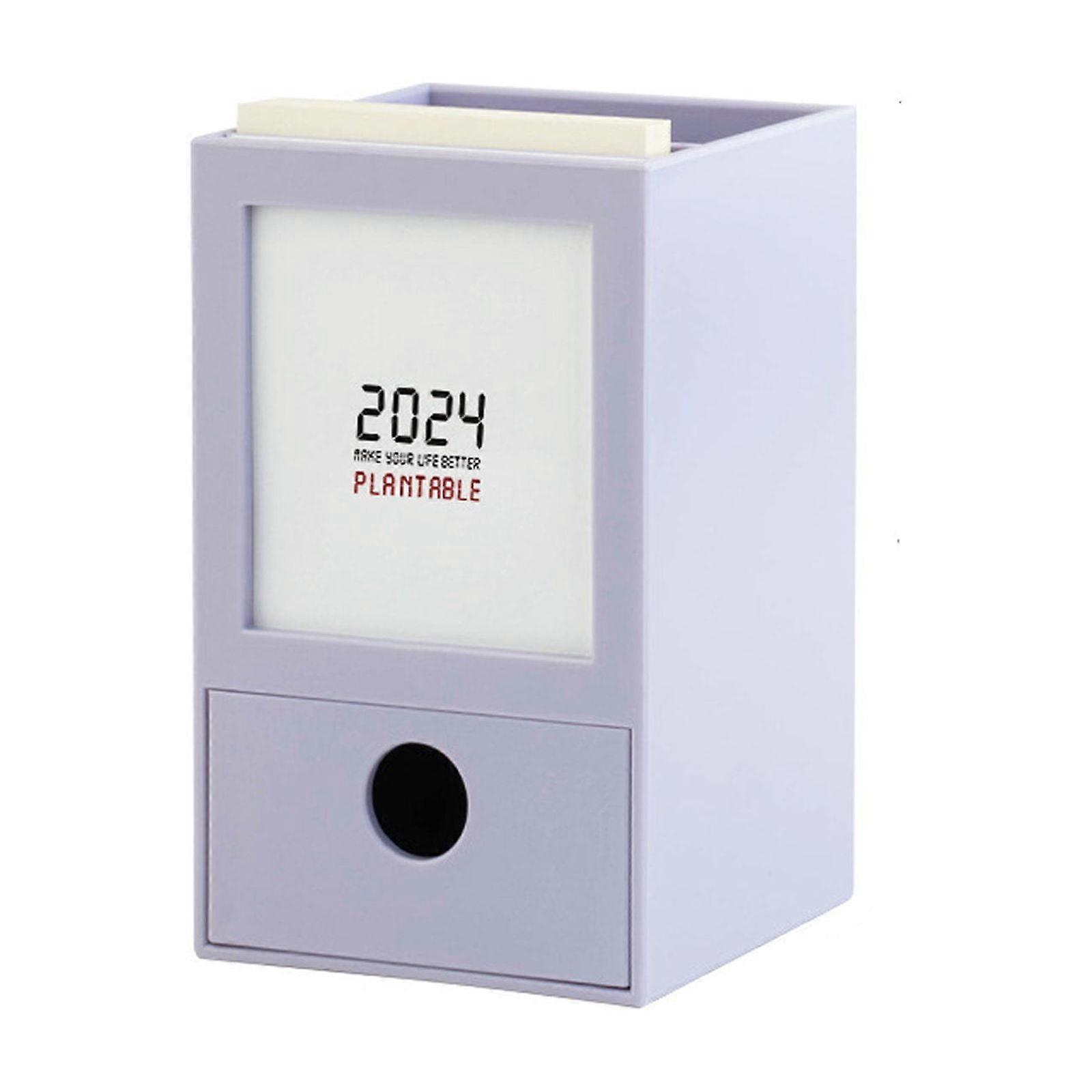 Quinlirra Desktop Storage Box with Calendar, Drawers & Pen Holder – Multi-Function Plastic Organizer for Home Office – Clearance Deal