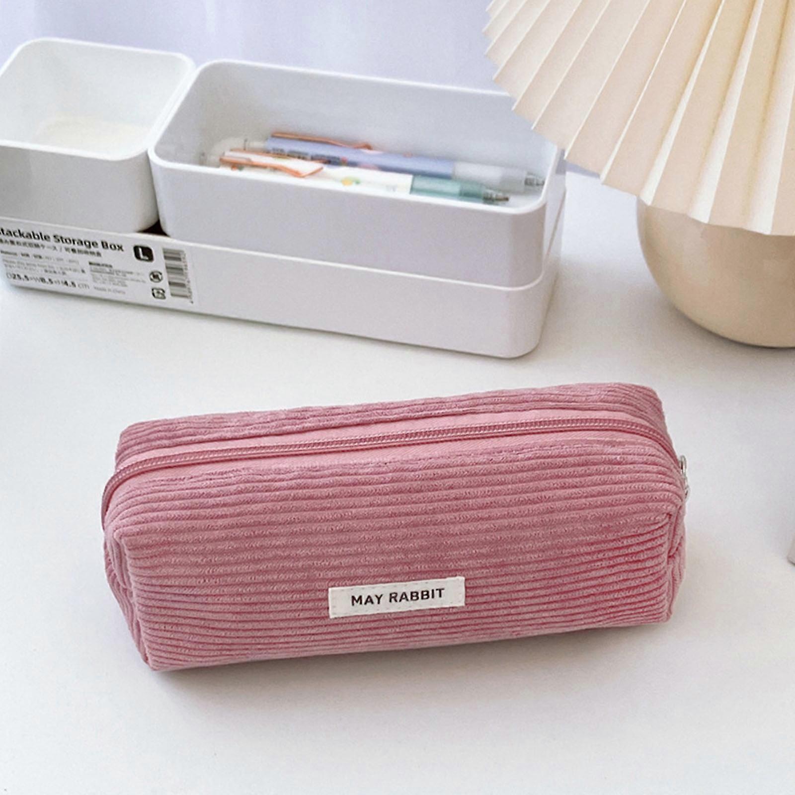 2 Pcs 2.4x2.8x7.5 Inch Big Pencil Case, Wide Opening Soft Corduroy Pen Bag with Zipper, Cute Aesthetic School Supplies for Teen Girls