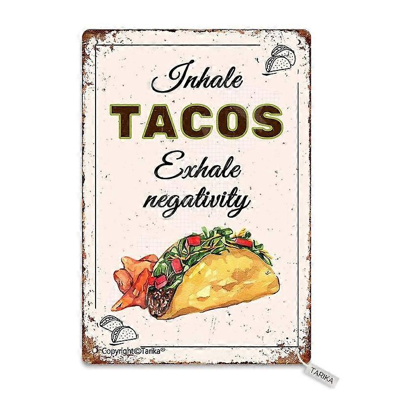 Inhale Tacos Exhale Negativity Tin Vintage Look Decoration Plaque Sign for Home Kitchen Bathroom Farm Garden Garage Size: 8 x 12 Inches