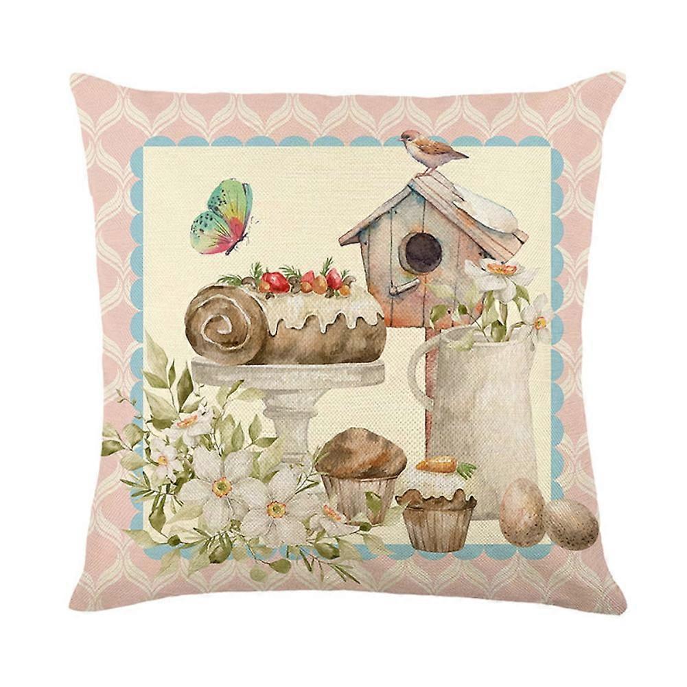 Easter Pillow Covers 18x18 Inch Set, Farmhouse Throw Pillowcase with Rabbit Nest Elf Egg Decor, Linen Cushion Case for Sofa, Couch, Bed, Car, Happy
