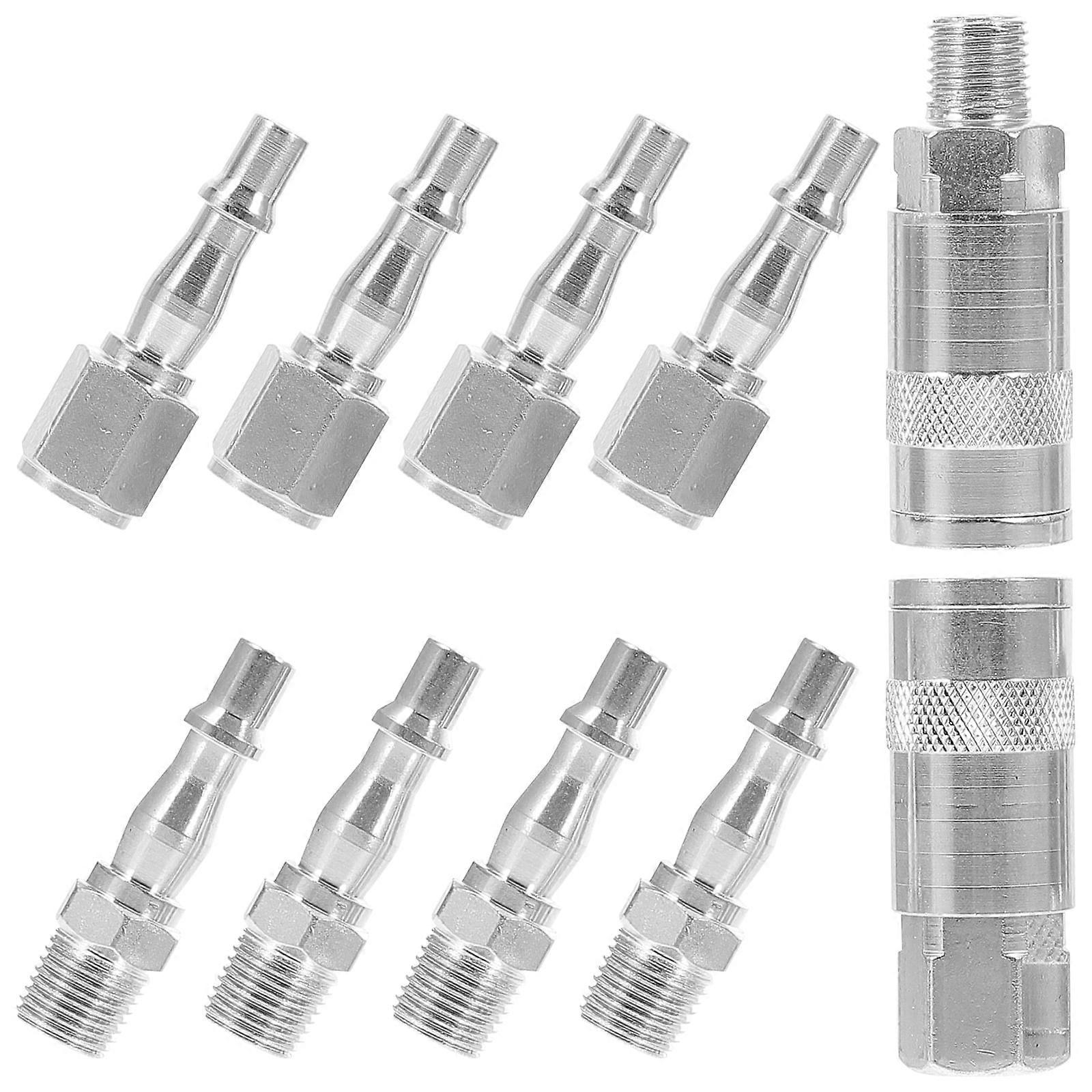 Description Designed for air tool, this air hose connector set is fit allows you to change the connector easily. Made of premium material for long time and durable use. It has a simple design, but very practical in use, giving you a good using experience. Also can be a good gift choice for your friends, they will like it. Features -Color:Silver -Material:Iron - Size: 6.00X2.20X2.20cm/2.36X0.86X0.86in - Construct with premium iron material, no air leakage, you can to air compressor easily. - It is wide compatible for air hose, air compressor, pressure washer, air blow, air tool, and etc. - Replace your old or broken air pipe fitting with a new one. - Easy to install and quick disconnect, will not have air leakage when changing tools. - Simple in structure, easy to use, not easy to deform, you can use it with confidence. Construct with premium iron material, no air leakage, you can to air compressor easily. It is wide compatible for air hose, air compressor, pressure washer, air blow, air tool, and etc. Replace your old or broken air pipe fitting with a new one. Easy to install and quick disconnect, will not have air leakage when changing tools. Simple in structure, easy to use, not easy to deform, you can use it with confidence.