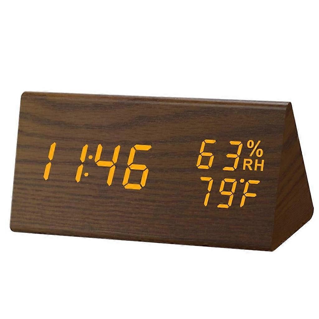 USB Voice Control Wooden Wooden Triangles Temperature LED Digital Alarm Clock, Digital Thermometer