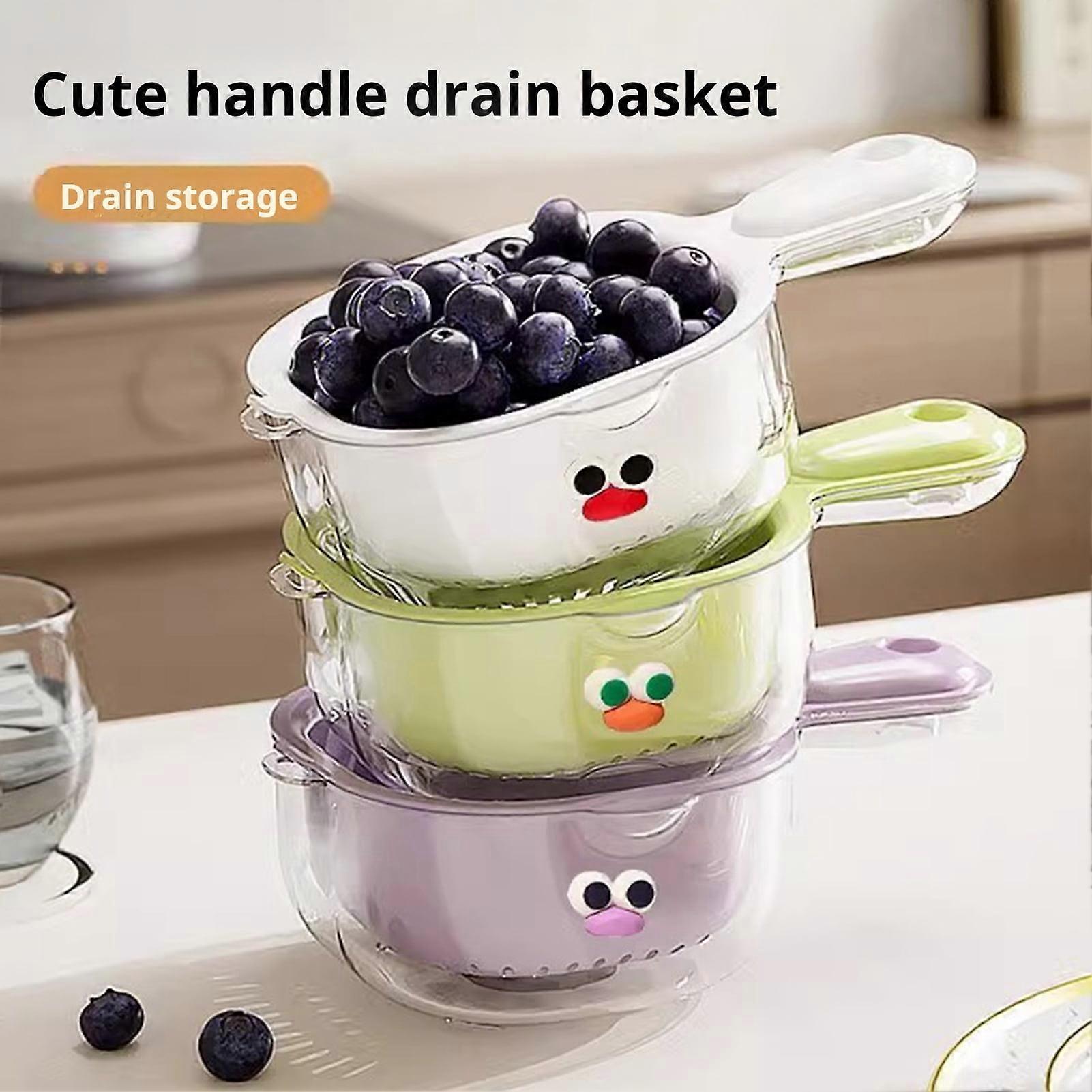 SUSUchens 2Pcs Double Layer Drain Baskets with Handle Food Grade BPA Free Multipurpose Fruit Strainer Draining Baskets with Handle Style B