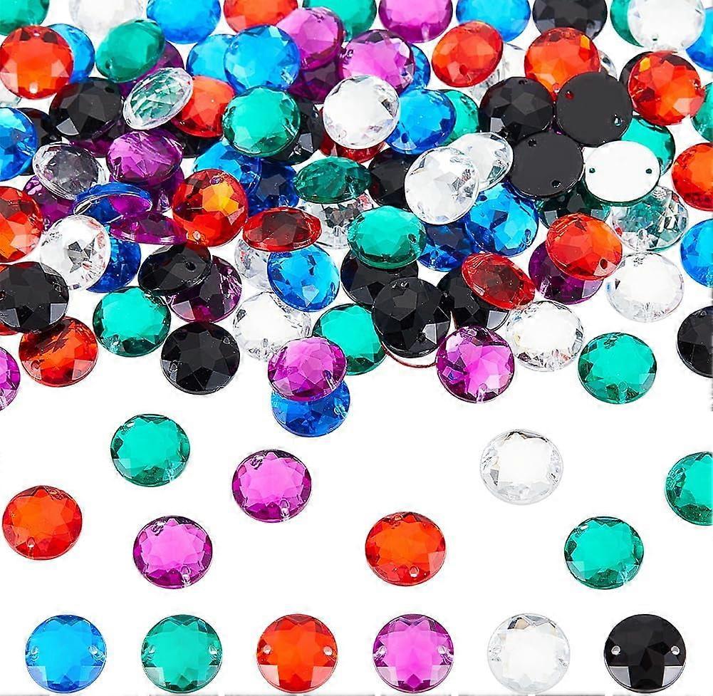 120Pcs 6 Colors 12mm Acrylic Sewing Rhinestones with 2 Holes, Flatback Crystals for Shoes, Clothes, Wedding Dress, Handbags, DIY