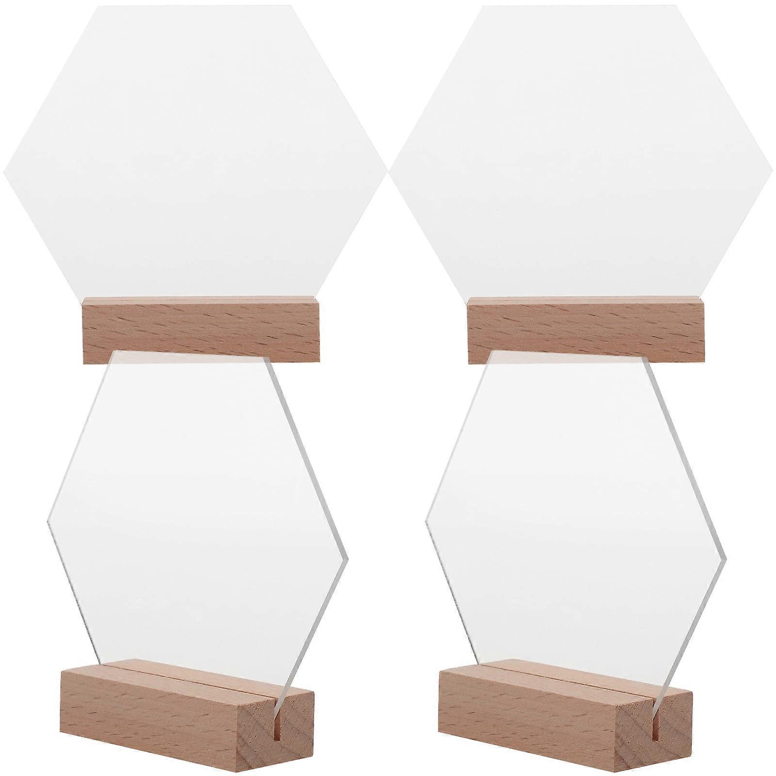 4 Pcs Emblems Acrylic Plaque with Holder Blank Hexagon Acrylic Sign Transparent Table Card Round Wedding Wood Acrylic