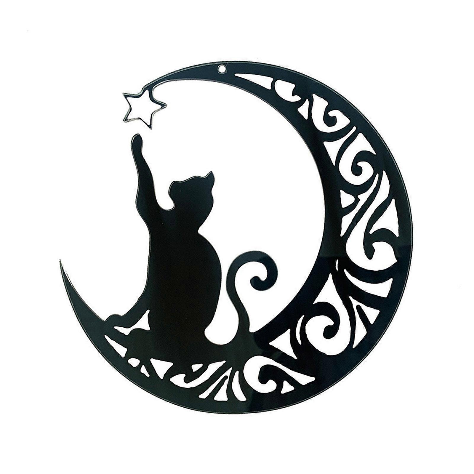 Halloween Moon Cat Wreath with Rose, Black Gothic Door Hanging for Window Wall Party Home Decor, Compatible with Halloween & Christmas