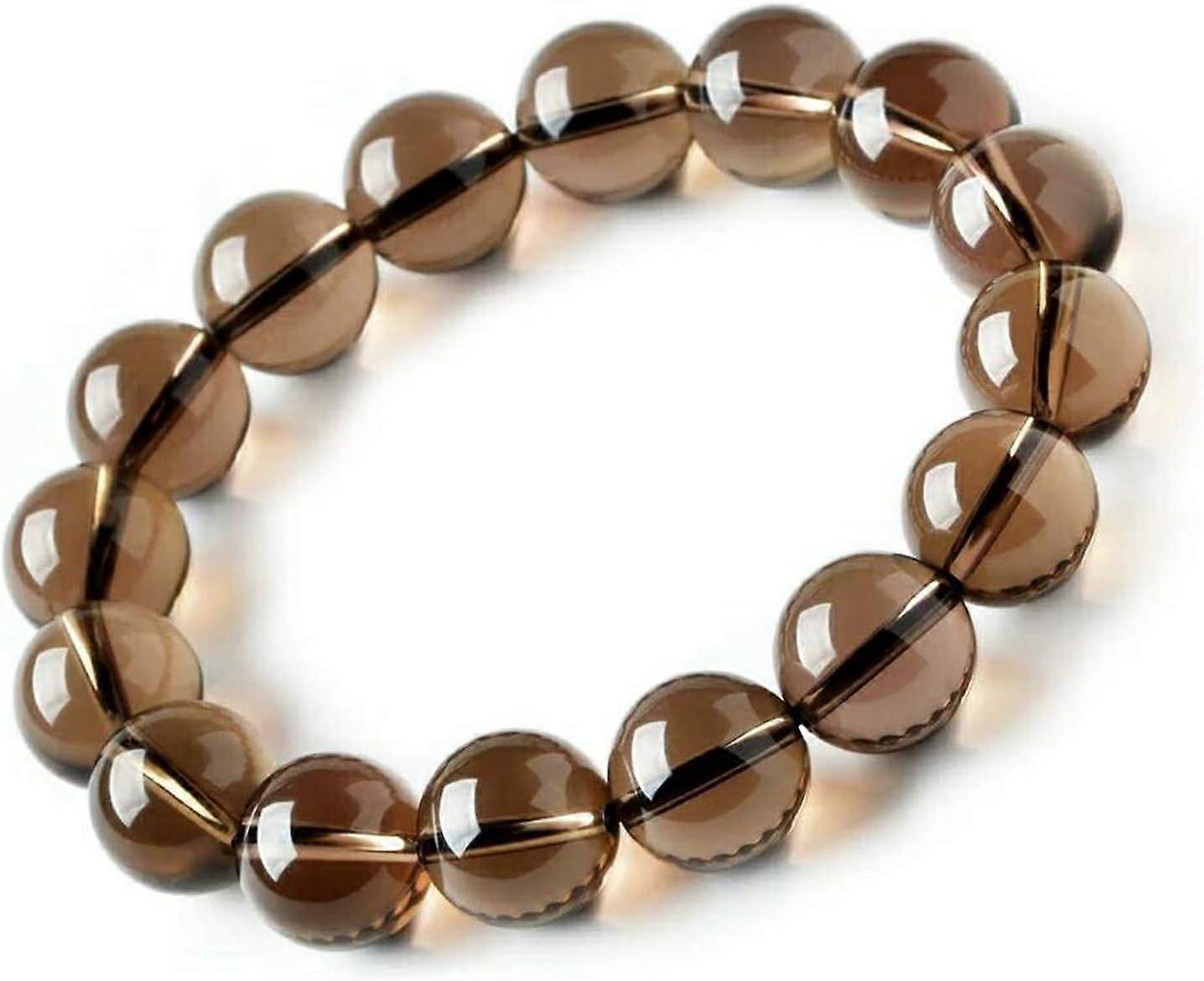 14mm Natural Smoky Quartz Brown Quartz Crystal Clear Round Beads Women Men Bracelet AAAA