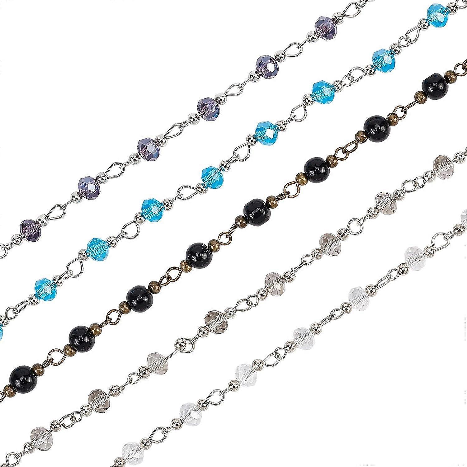 33 Feet Round Faceted Glass Beads Chains with Brass Eye Pin Handmade Beaded Chains Unwelded Brass Chains