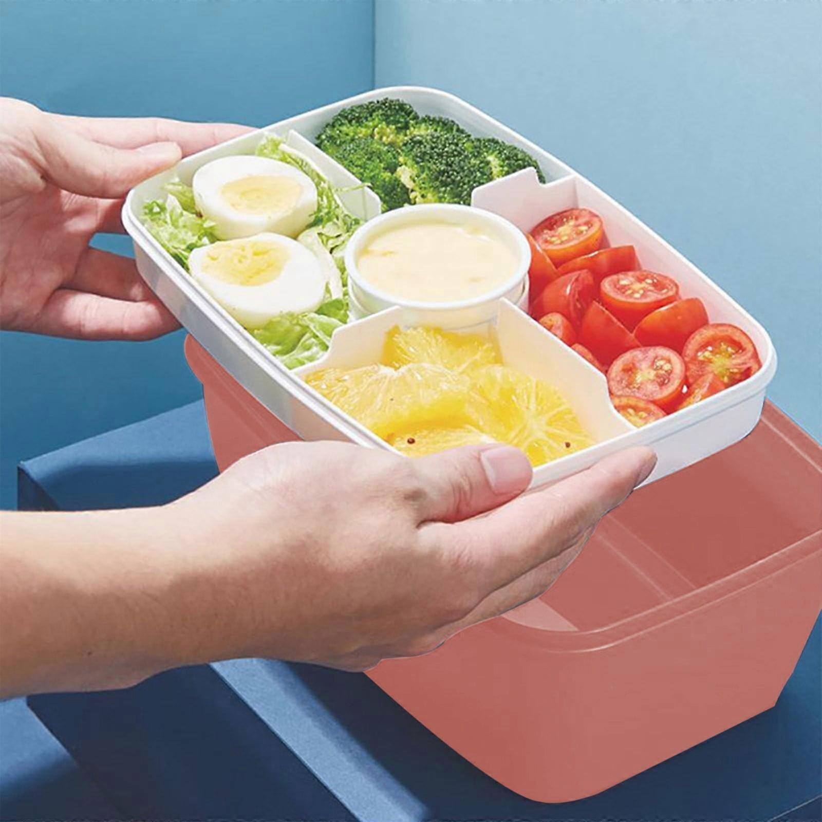 Begine|Large Salad Lunch Container Adult Lunch Box with 68 Oz Salad Bowl 4 Compartment Tray 1Pc 3 Oz Cups Stackable, Pink, 1* Bento Box