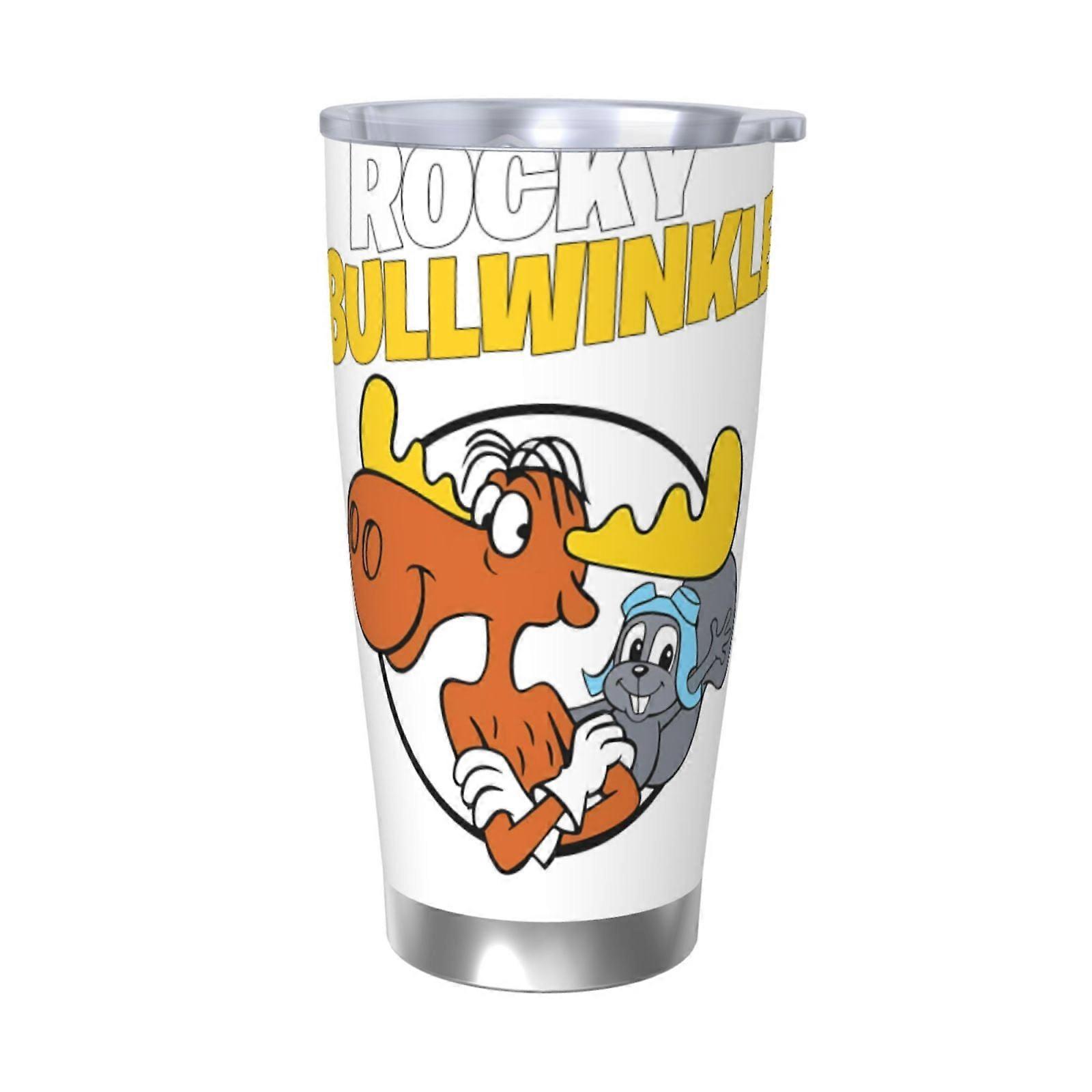 20oz Rocky and Bullwinkle Tumbler with Lid, Durable Insulated Coffee Mug, Thermal Cup Compatible with Car Cup Holders