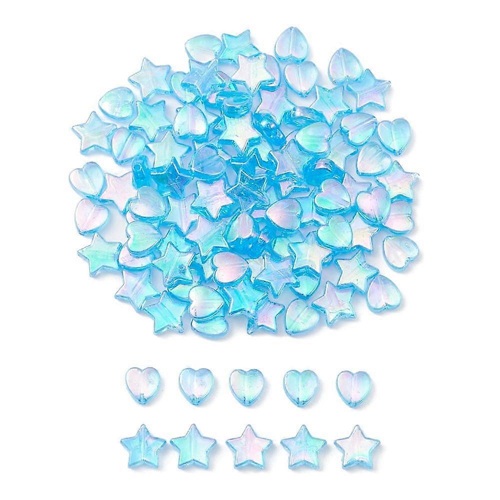 100Pcs 2 Style Eco-Friendly Transparent Acrylic Beads Heart/Star Dyed AB Color Deep Sky Blue 8~10x8~10x3~4mm Hole: 1.5mm 50pcs/style