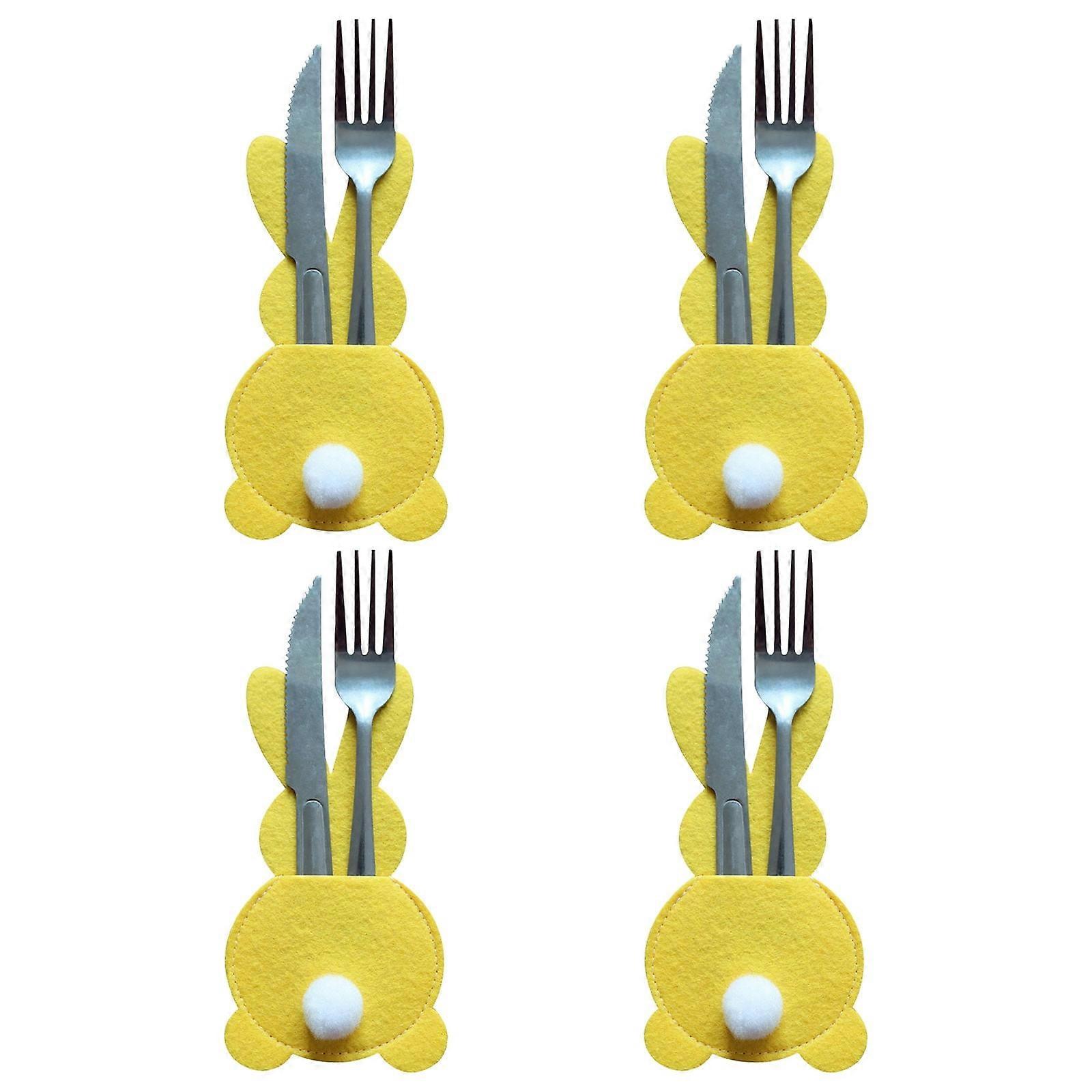 Easter Decorations Indoor Outdoor Set of 4 Bunny Flatware Holders, Rabbit Cutlery Bags with Tail - Easter Home Decoration
