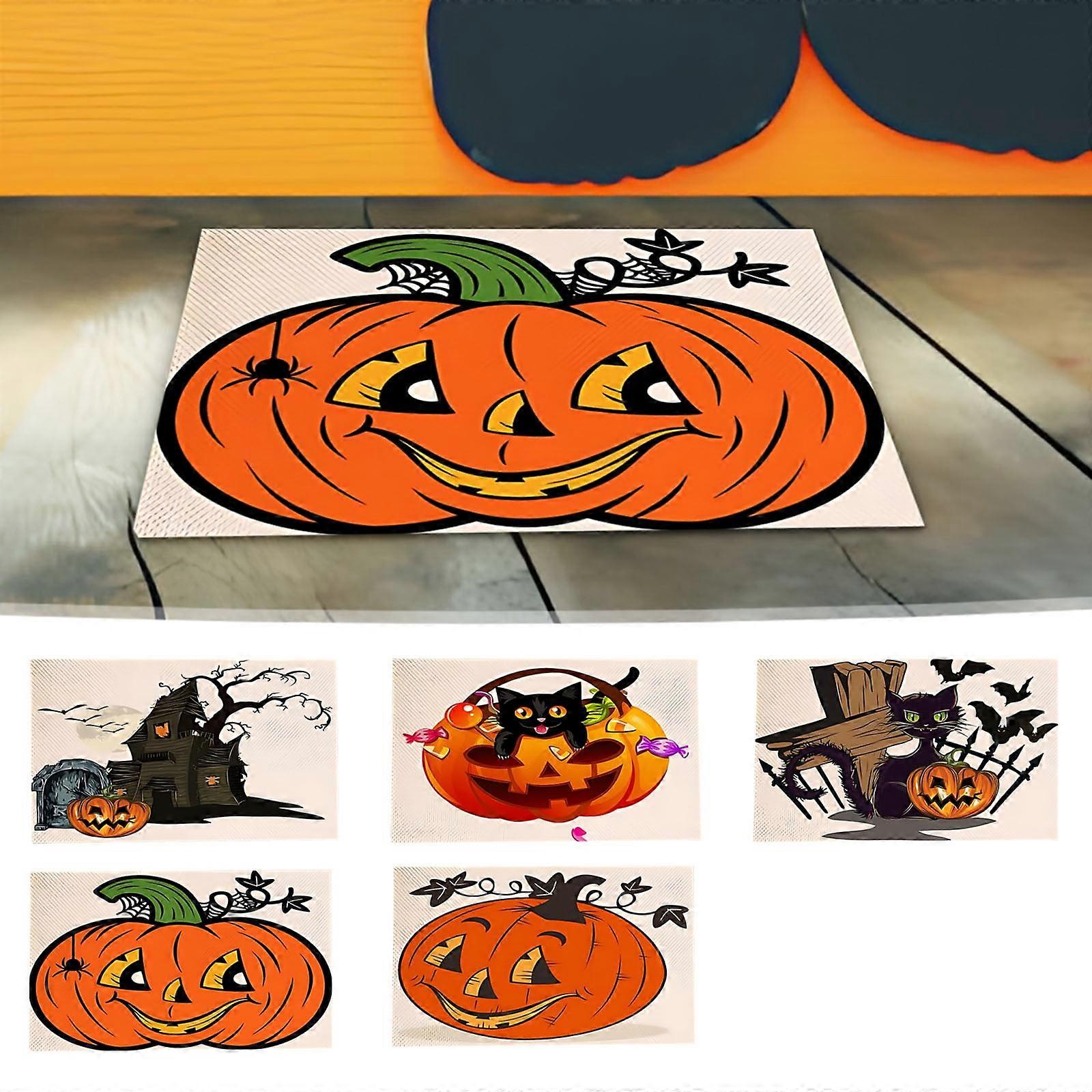 Jacenvly Fall Decor: Witch Hat & Pumpkin Linen Print Dinner Mat, Compatible with Halloween Party Supplies