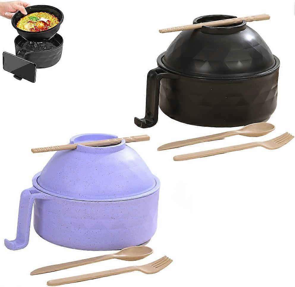 Microwave Ramen Bowl with Strainer, Chopsticks, Spoon & Phone Holder - All in One Safe Soup Bowl, Microwavable Noodle Bowl