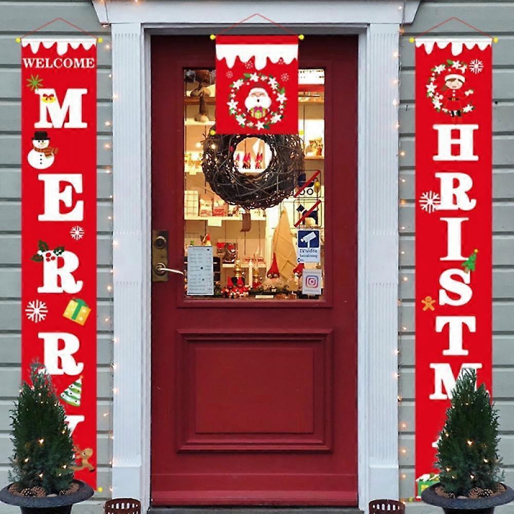 Merry Christmas Party Decor Porch Sign Front Door Hanging Banners Flags, Twill Fabric Wall Decoration for Indoor Outdoor Home Yard Farmhouse, Red