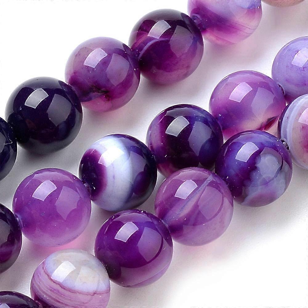 1Strand Natural Striped Agate/Banded Agate Beads Strands Dyed Round Blue Violet 6mm Hole: 1mm about 63pcs/strand 14.96 inch