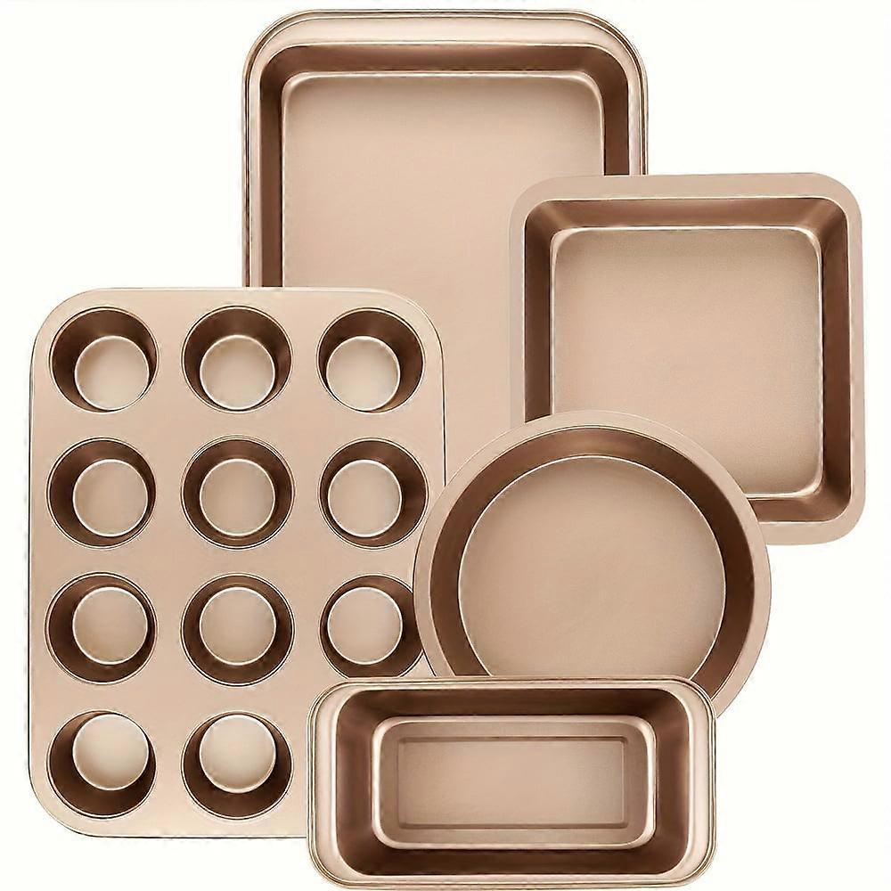 Non-stick pan set, 5-piece Kitchen oven pan set, pan set with round/square cake pan, muffin pan Kitchen baking essentials, black/gold