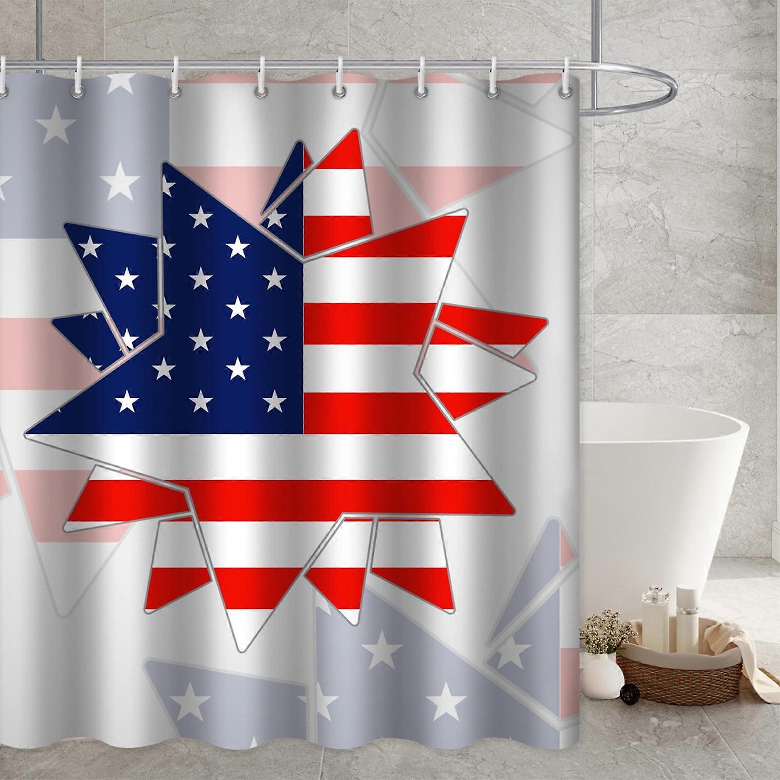 YiFudd Shower Curtain for Bathroom, American Flag Pattern with Stars and T, Long Universal Shower Curtains Set, Compatible with Standard Showers