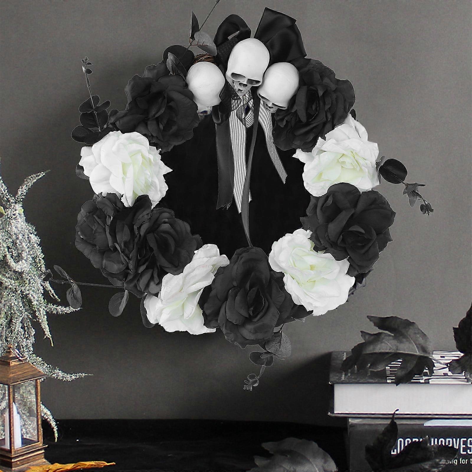 YiFudd Front Door Halloween Wreath, Skeleton Wreath With Skeleton Rose Ornament, Halloween Wreath For Indoor Outdoor Window Wall Halloween Decoration