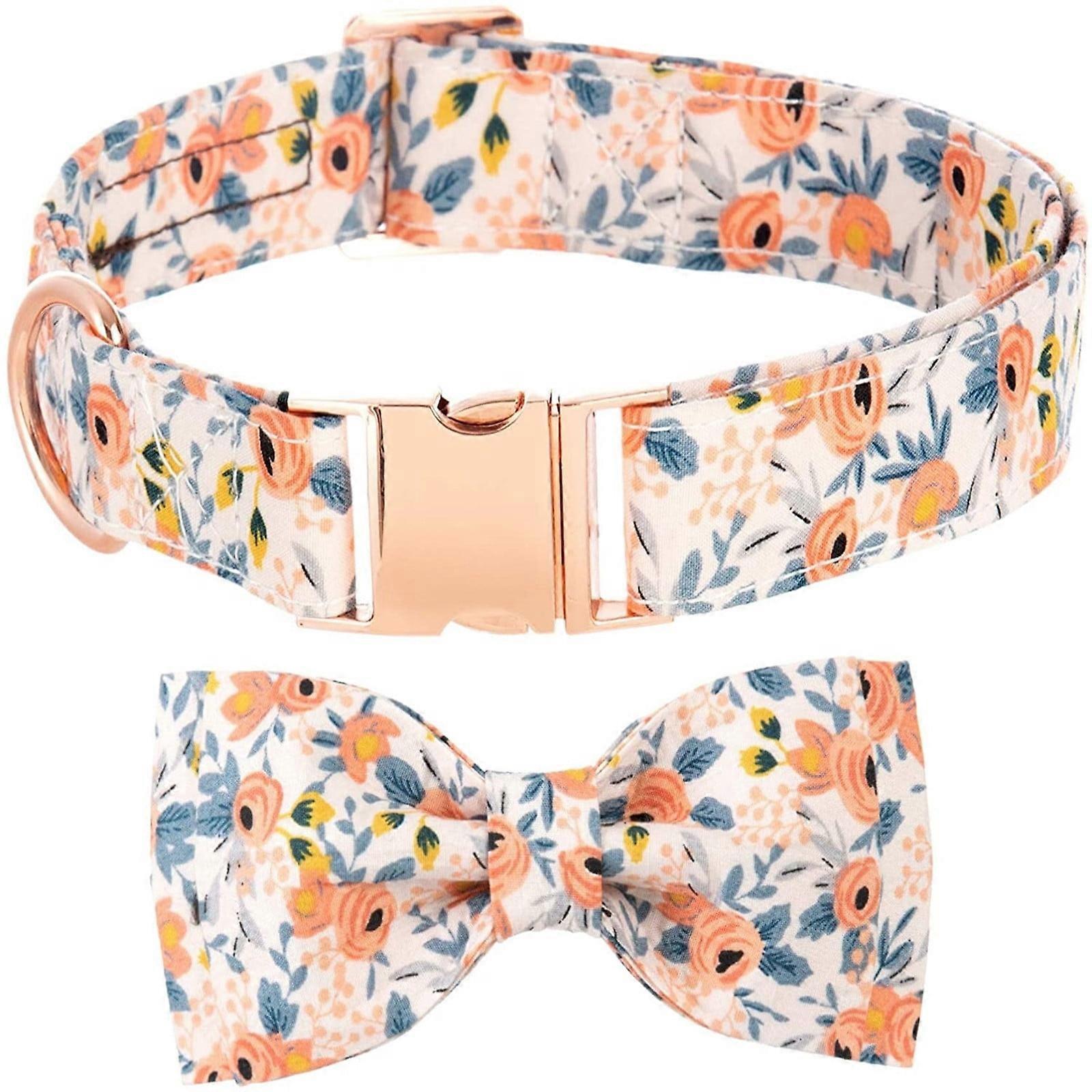 Fall Savings! WJSXC Valentine's Day Dog Collar with Flower, Rose Holiday Soft Durable Cotton Puppy Collar for Small Medium Large Dogs Orange S