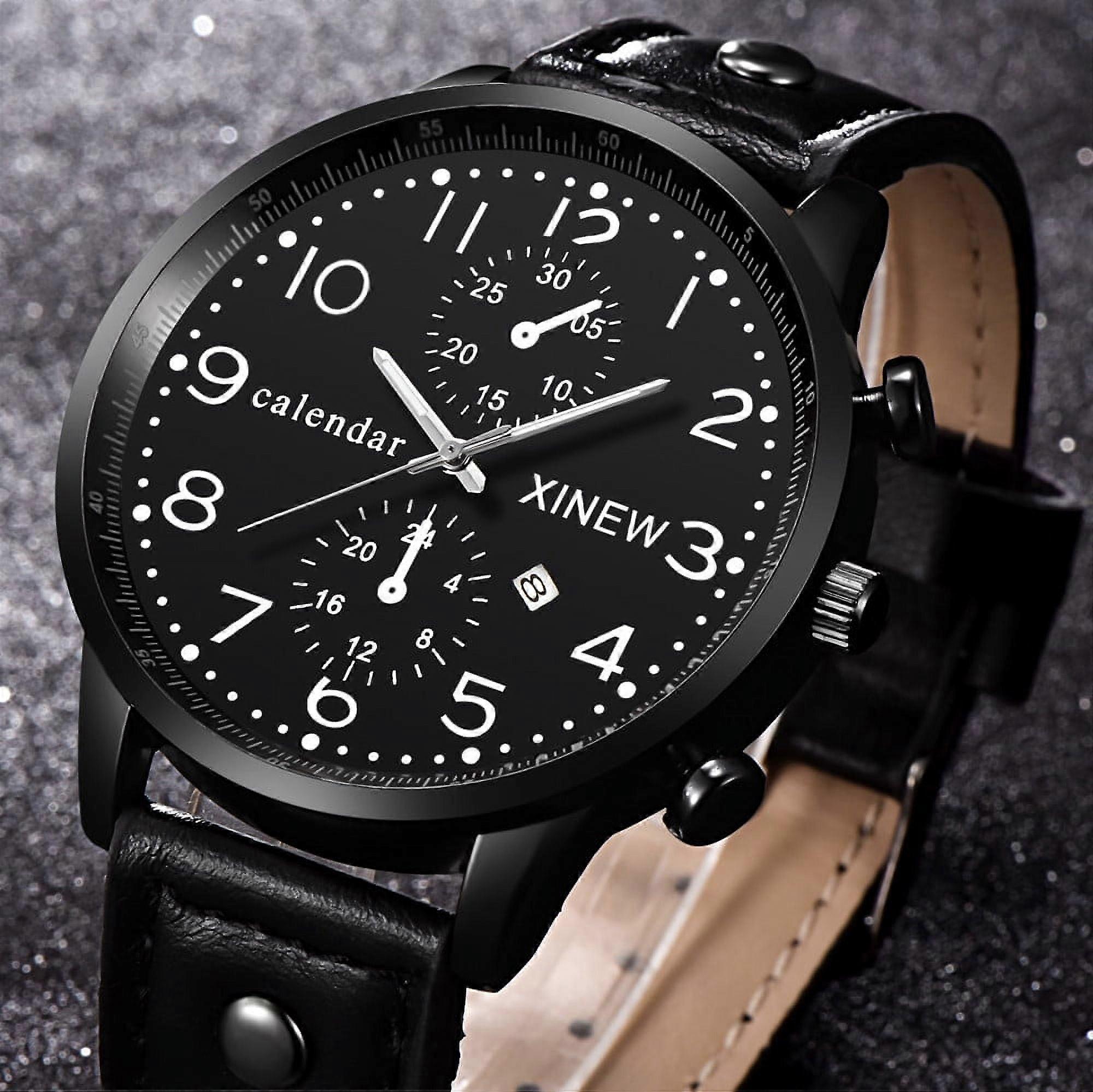 Jacenvly Clearance 2024 New Fashion Men Sports Date Analog Quartz Leather Stainless Steel Wrist Watch Cool