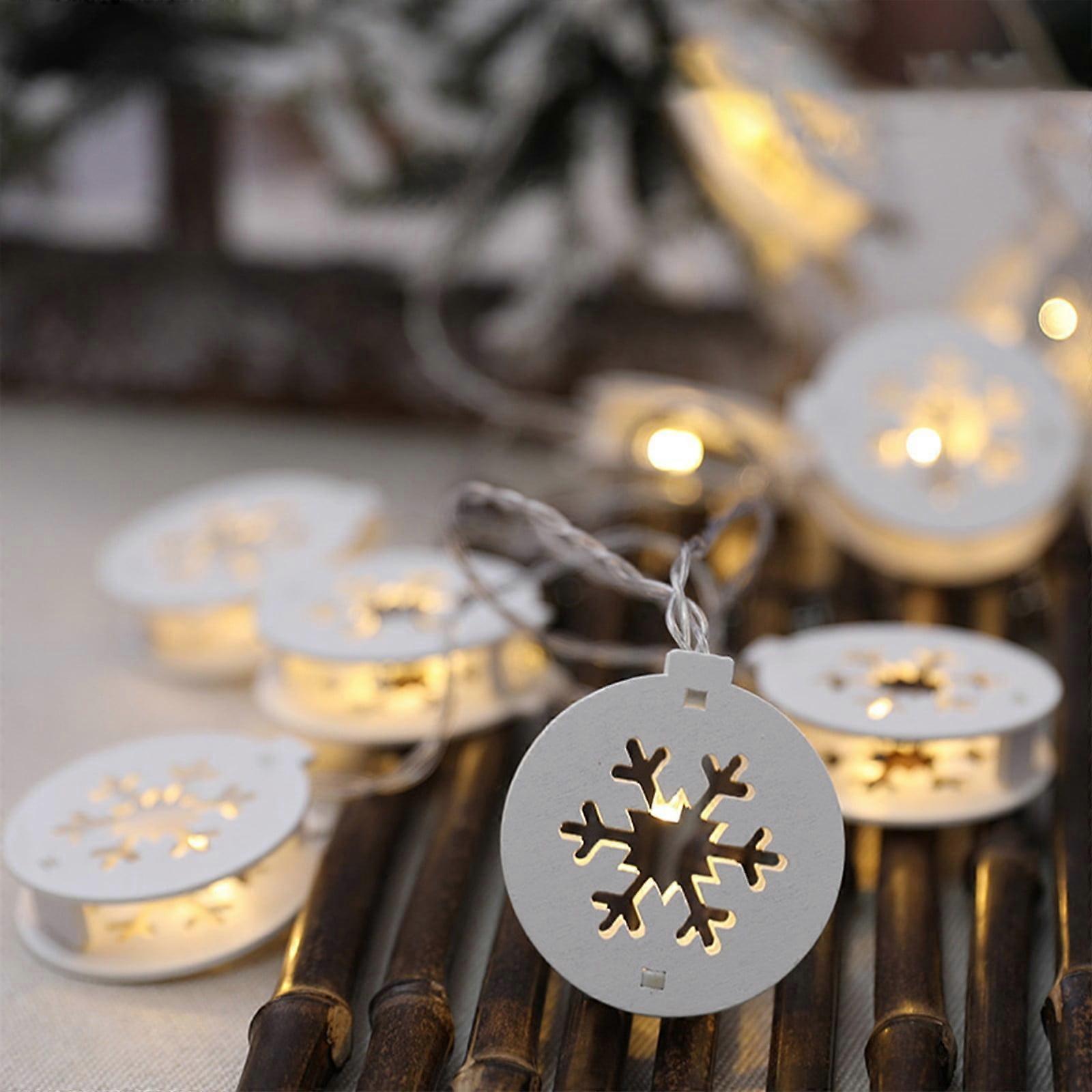 Christmas Wooden LED Snowflake Lights Hollowed-out Small House Lights Supermarket Scene Decoration Five-star String Lights