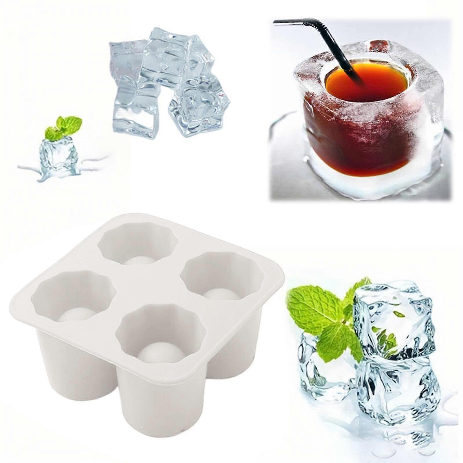 Silicone Ice Cup /Trays For Freezer With 4 Cavities Easy To Release Ice Ice Homemade Home DIY (Square) Short