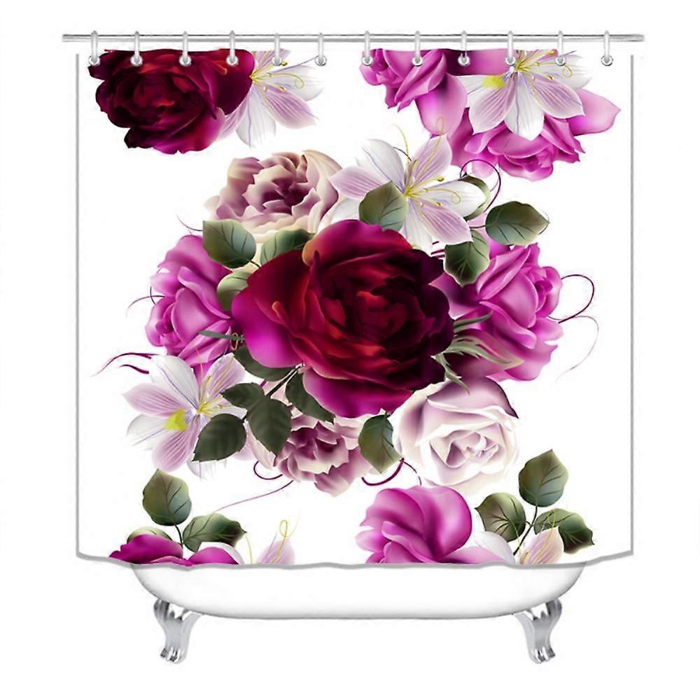 Flowers Shower Curtain 71x71 Inch, Floral Fabric Bathroom Curtain with Hooks, Machine Washable Home Decoration