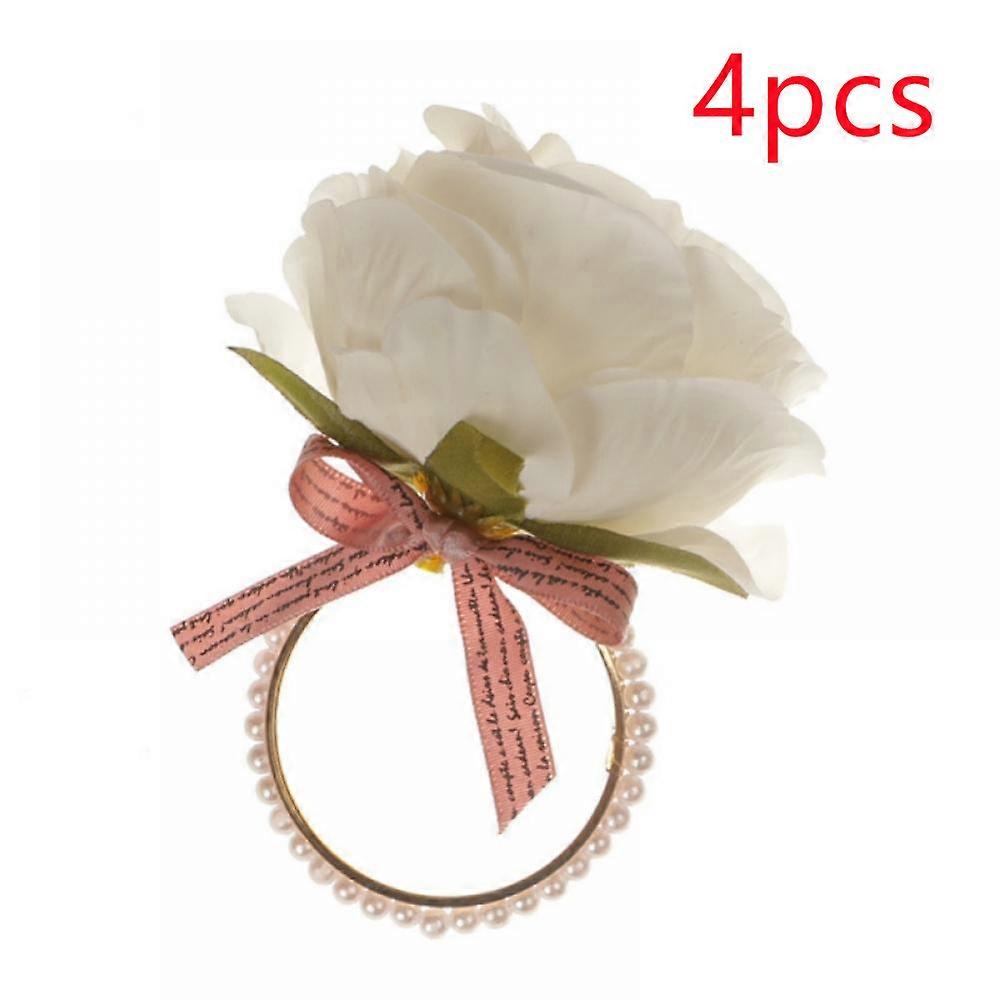 Napkin Ring For Family Dinners, Weddings, Outdoor Parties Or Everyday Use-Roses, 4-Piece Set, White