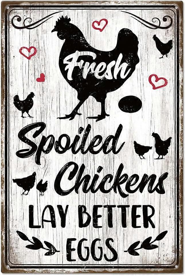 Vintage Chicken Coop Tin Sign 12x8" - "Spoiled Chickens Lay Better Eggs" Funny Farm Wall Decor for Home, Bar, Coffee Shop