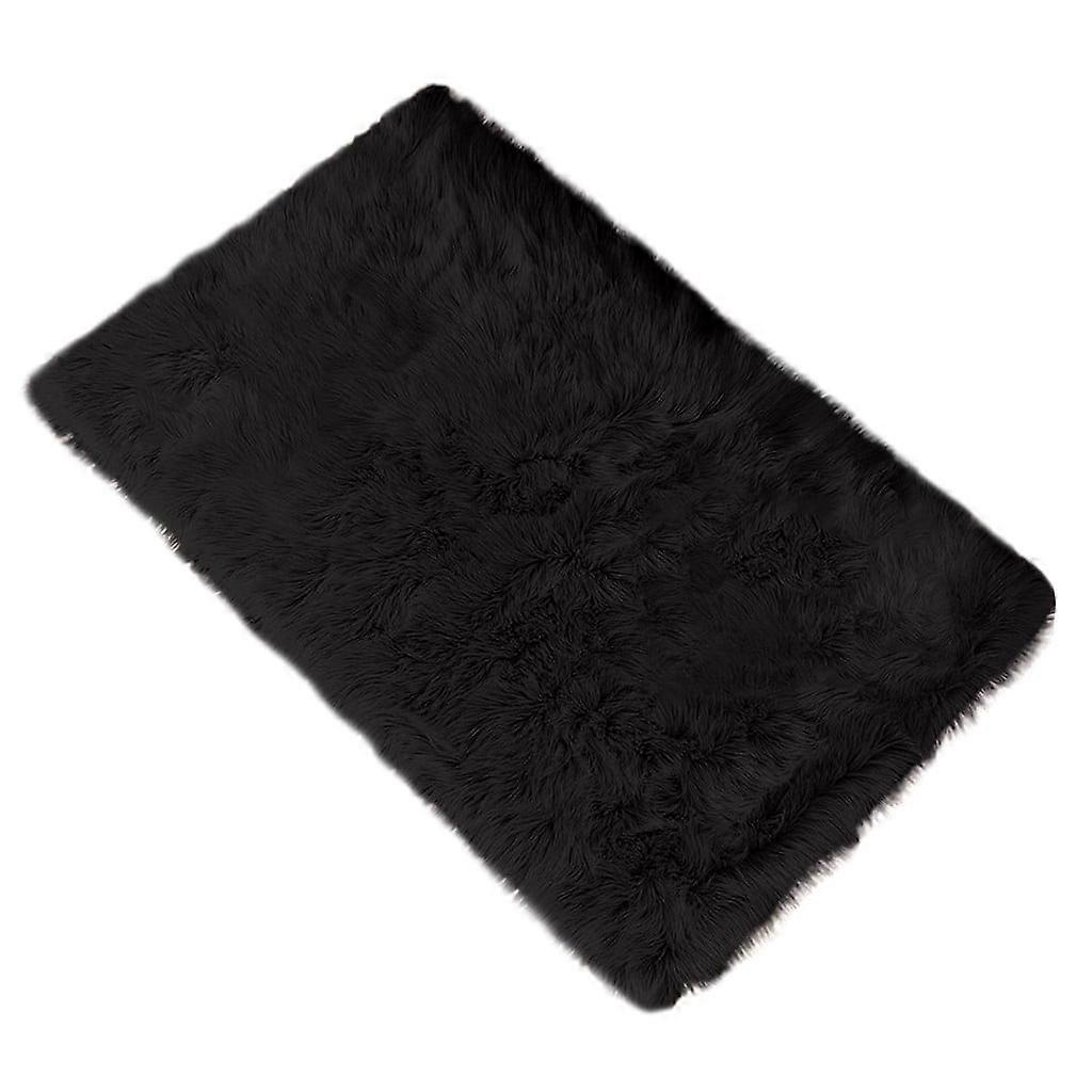yuehao home textiles wool imitation sheepskin rugs non slip bedroom shaggy carpet mats carpet black