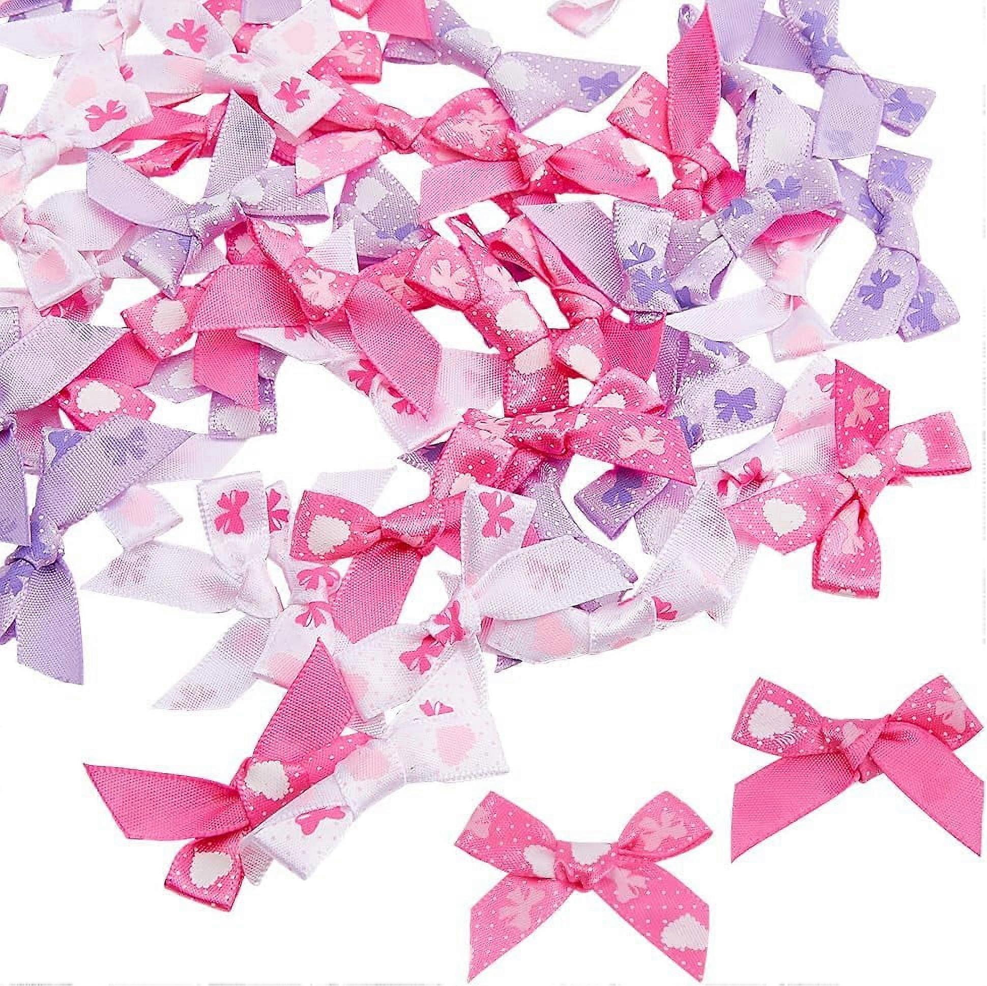 60Pcs 3 Colors Mini Satin Ribbon Bows 4x2.5cm, Heart Pattern Print Bowknots for DIY Craft, Wedding Decor, Gift Wrapping, Card Making