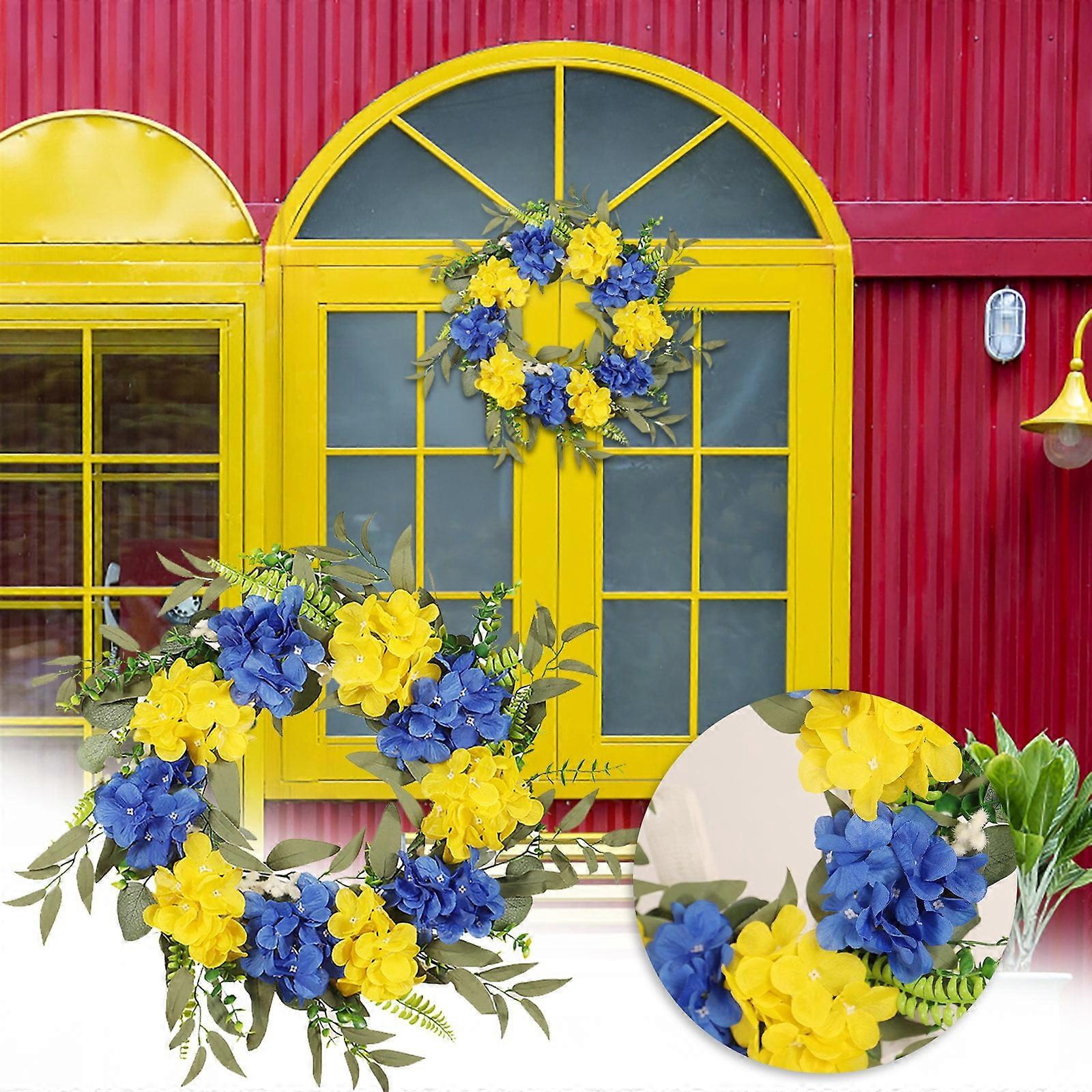 Blue Yellow Wreath for Front Door, Home Wall, Wedding Tabletop - Compatible with Farmhouse Summer Decor