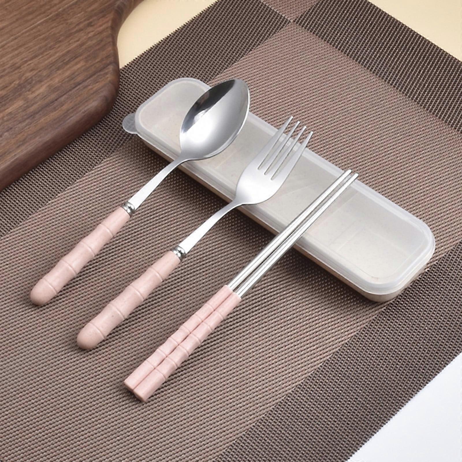 Txmfgh Stainless Steel 3-in-1 Travel Cutlery Set with Case, Fork Spoon Chopsticks, Portable for Camping Picnics Everyday Use